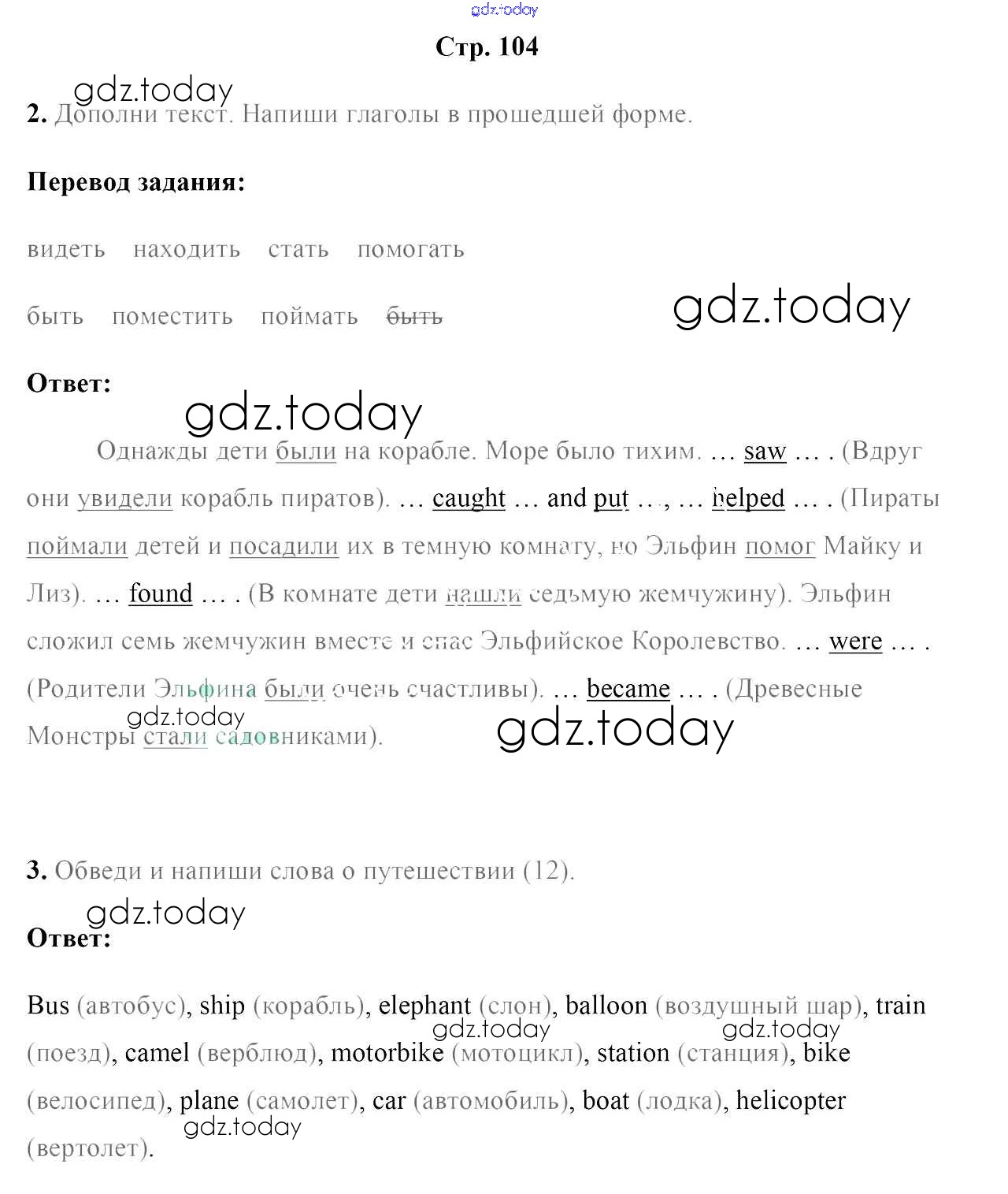 На страницах сайта gdz.today вы найдете учебный и вспомогательный материал, направленный на улучшения знаний школьной программы. ГДЗ - онлайн мир знаний Решение к части 2. Страницы 104 Рабочей тетради по Английскому языку для 5 класса Лапицкая, Севрюкова Аверсэв 2016