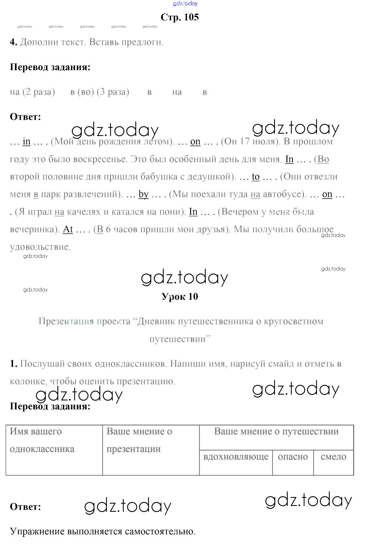 На страницах сайта gdz.today вы найдете учебный и вспомогательный материал, направленный на улучшения знаний школьной программы. ГДЗ - онлайн мир знаний Решение к части 2. Страницы 105 Рабочей тетради по Английскому языку для 5 класса Лапицкая, Севрюкова Аверсэв 2016