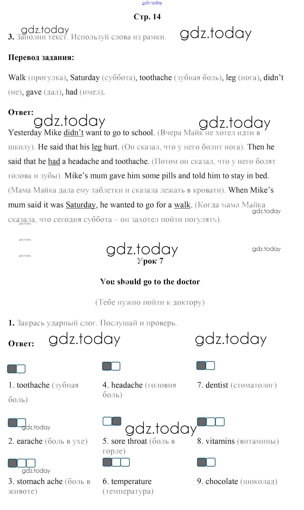 На страницах сайта gdz.today вы найдете учебный и вспомогательный материал, направленный на улучшения знаний школьной программы. ГДЗ - онлайн мир знаний Решение к части 2. Страницы 14 Рабочей тетради по Английскому языку для 5 класса Лапицкая, Севрюкова Аверсэв 2016