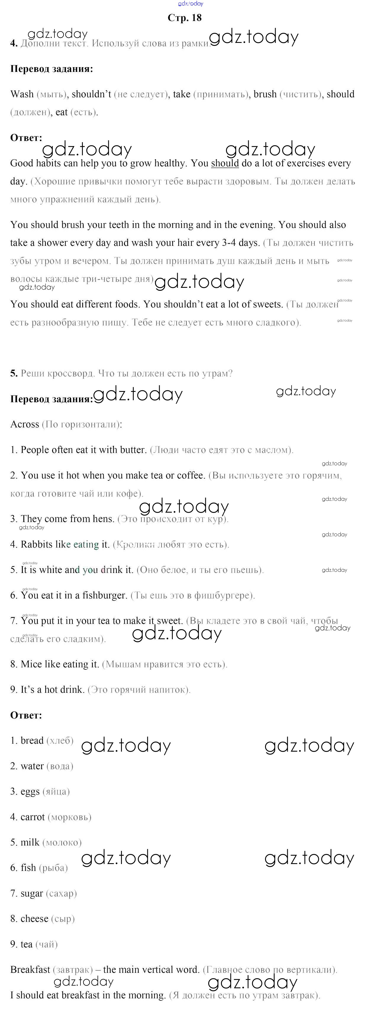 На страницах сайта gdz.today вы найдете учебный и вспомогательный материал, направленный на улучшения знаний школьной программы. ГДЗ - онлайн мир знаний Решение к части 2. Страницы 18 Рабочей тетради по Английскому языку для 5 класса Лапицкая, Севрюкова Аверсэв 2016