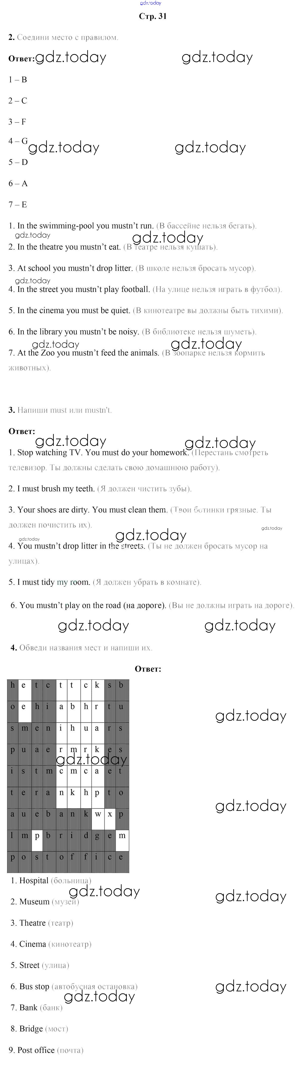На страницах сайта gdz.today вы найдете учебный и вспомогательный материал, направленный на улучшения знаний школьной программы. ГДЗ - онлайн мир знаний Решение к части 2. Страницы 31 Рабочей тетради по Английскому языку для 5 класса Лапицкая, Севрюкова Аверсэв 2016