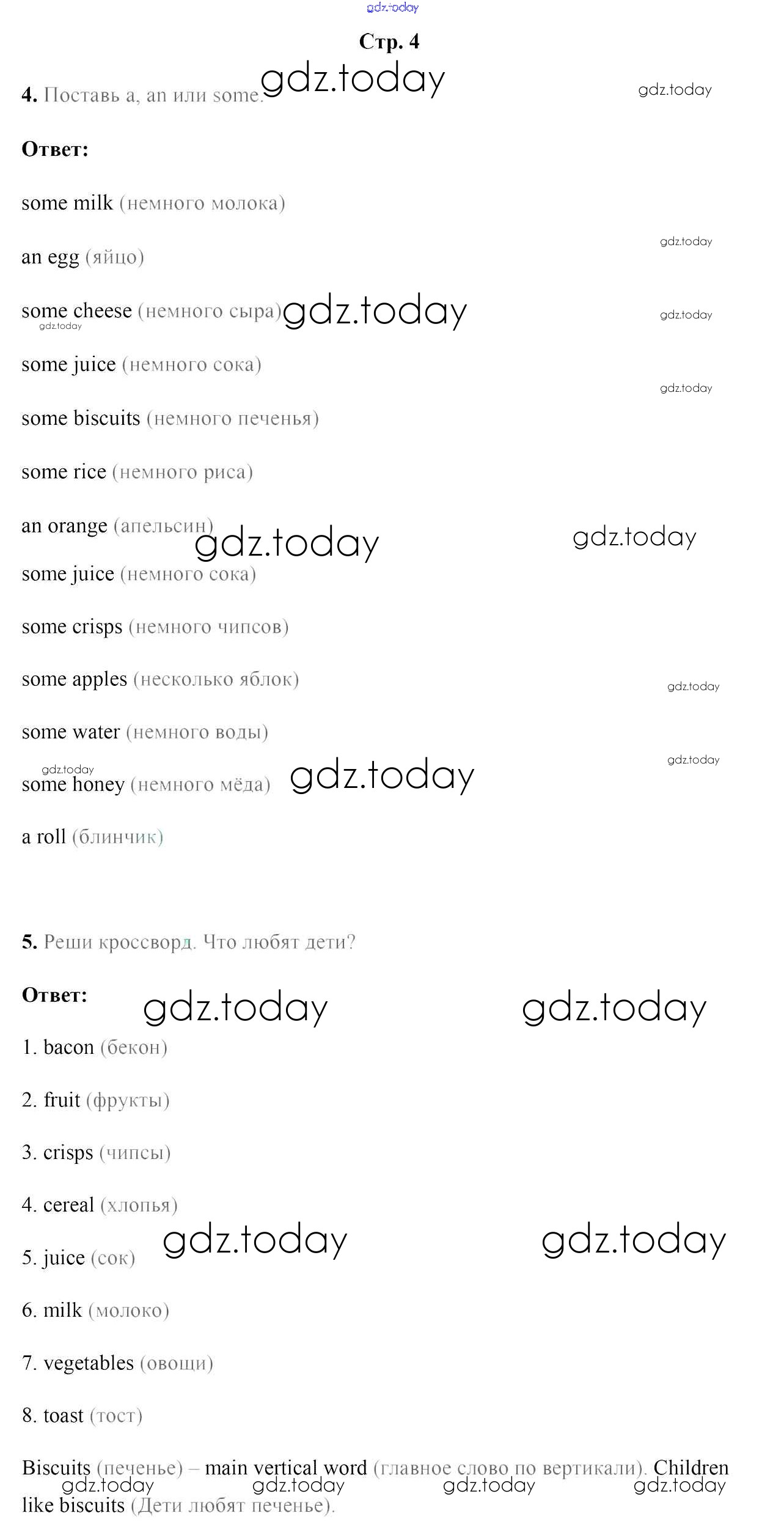 Ответы к Решение к части 2. Страницы 4 Рабочей тетради по Английскому языку для 5 класса Лапицкая, Севрюкова Аверсэв 2016