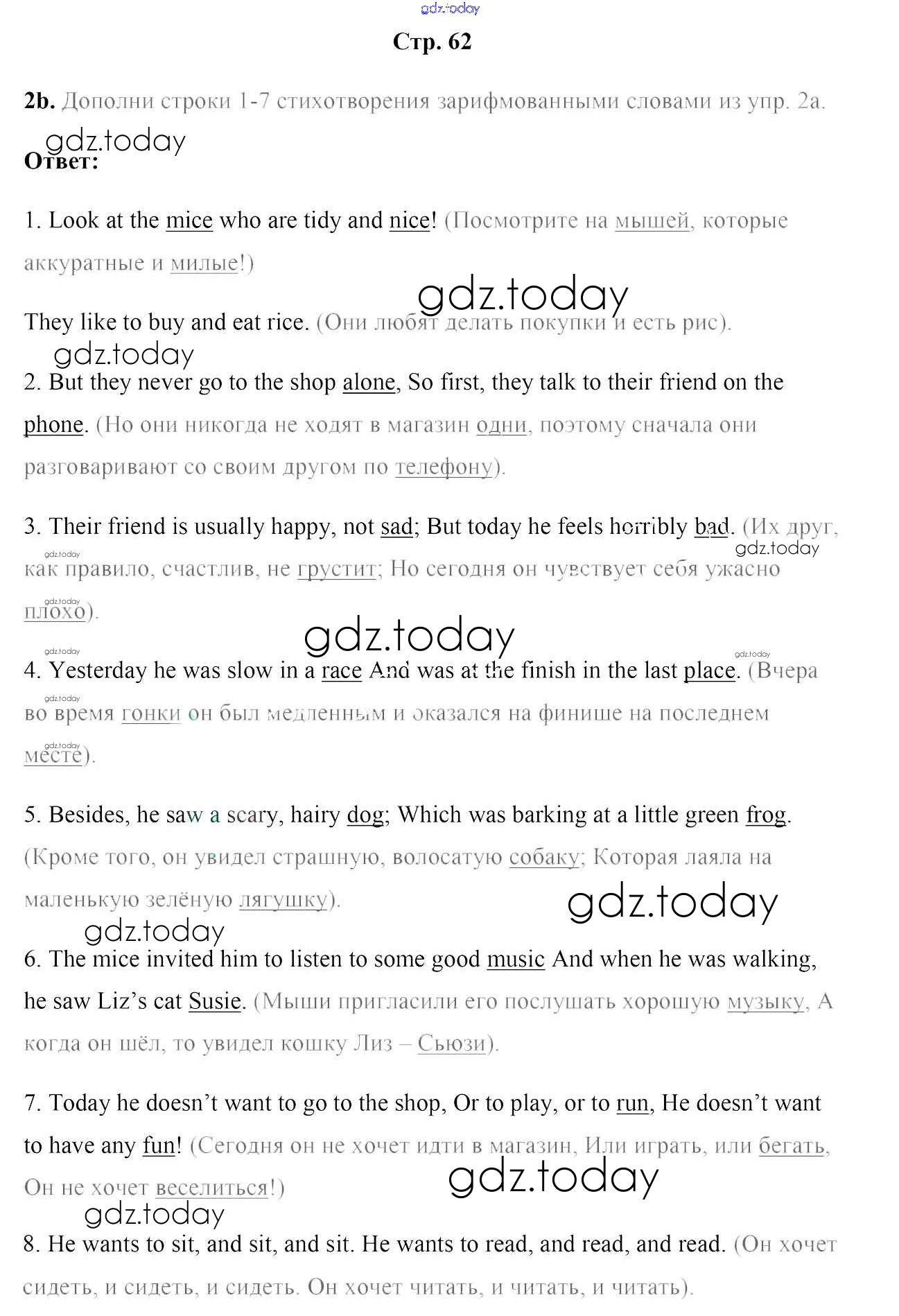 На страницах сайта gdz.today вы найдете учебный и вспомогательный материал, направленный на улучшения знаний школьной программы. ГДЗ - онлайн мир знаний Решение к части 2. Страницы 62 Рабочей тетради по Английскому языку для 5 класса Лапицкая, Севрюкова Аверсэв 2016