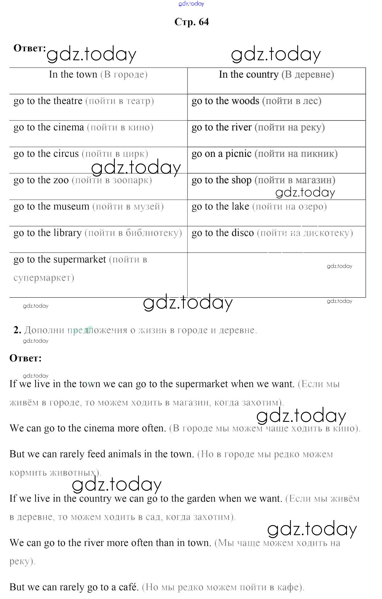 На страницах сайта gdz.today вы найдете учебный и вспомогательный материал, направленный на улучшения знаний школьной программы. ГДЗ - онлайн мир знаний Решение к части 2. Страницы 64 Рабочей тетради по Английскому языку для 5 класса Лапицкая, Севрюкова Аверсэв 2016