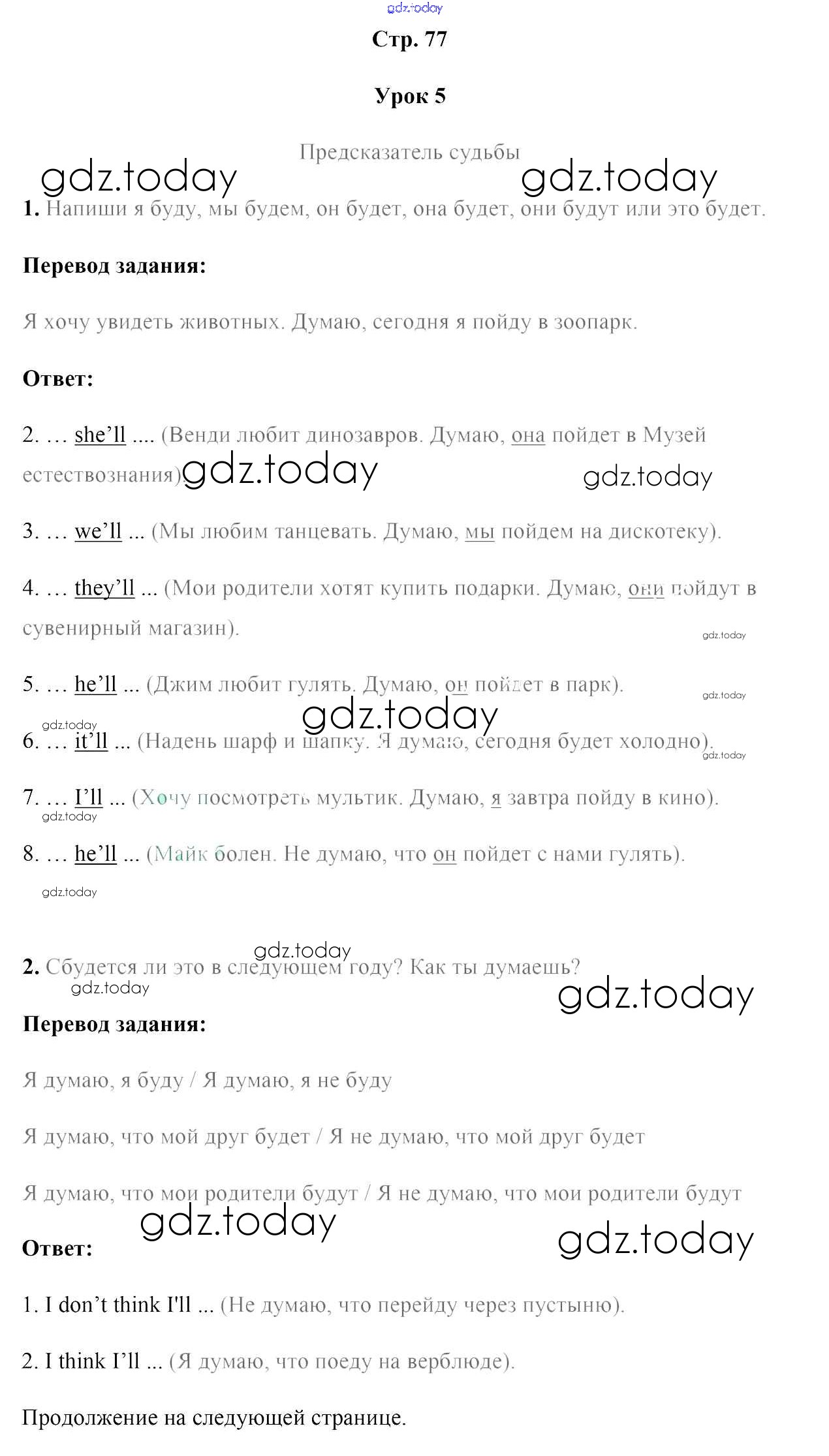 На страницах сайта gdz.today вы найдете учебный и вспомогательный материал, направленный на улучшения знаний школьной программы. ГДЗ - онлайн мир знаний Решение к части 2. Страницы 77 Рабочей тетради по Английскому языку для 5 класса Лапицкая, Севрюкова Аверсэв 2016