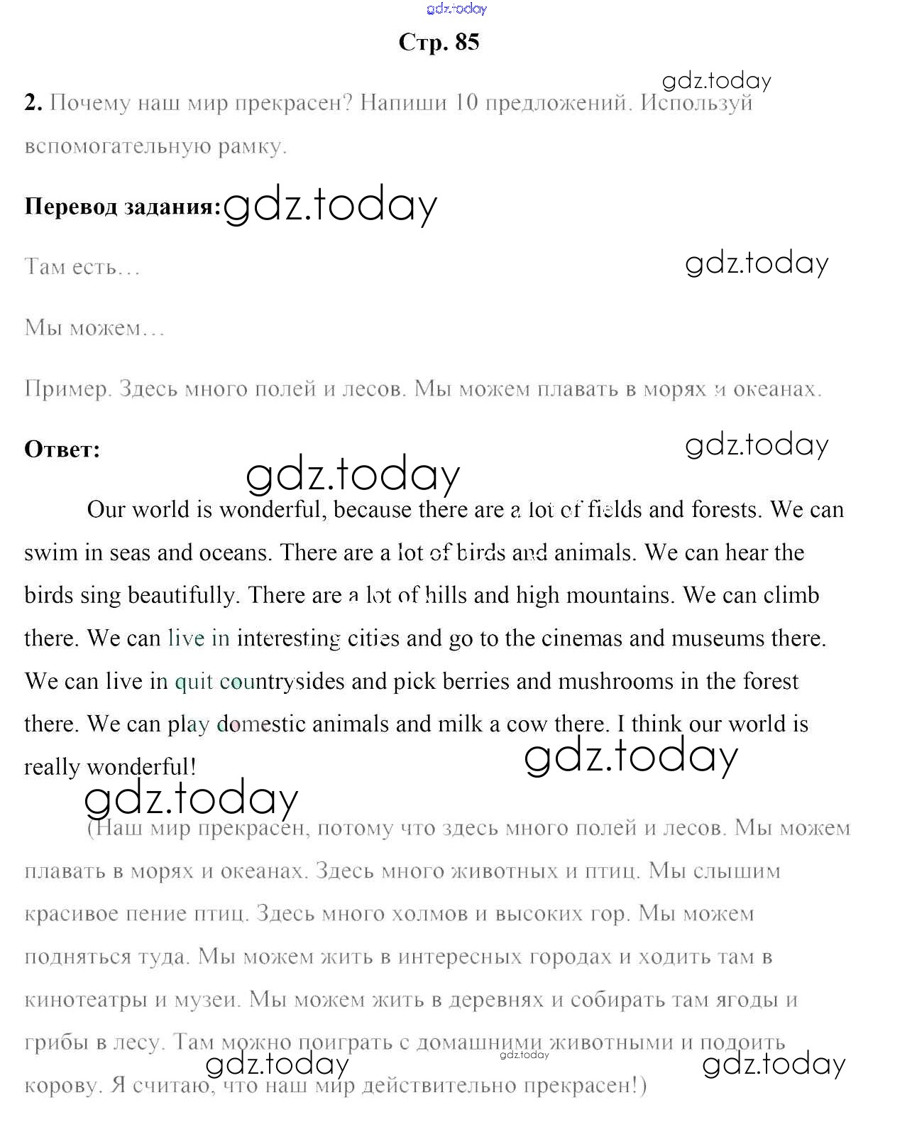 На страницах сайта gdz.today вы найдете учебный и вспомогательный материал, направленный на улучшения знаний школьной программы. ГДЗ - онлайн мир знаний Решение к части 2. Страницы 85 Рабочей тетради по Английскому языку для 5 класса Лапицкая, Севрюкова Аверсэв 2016