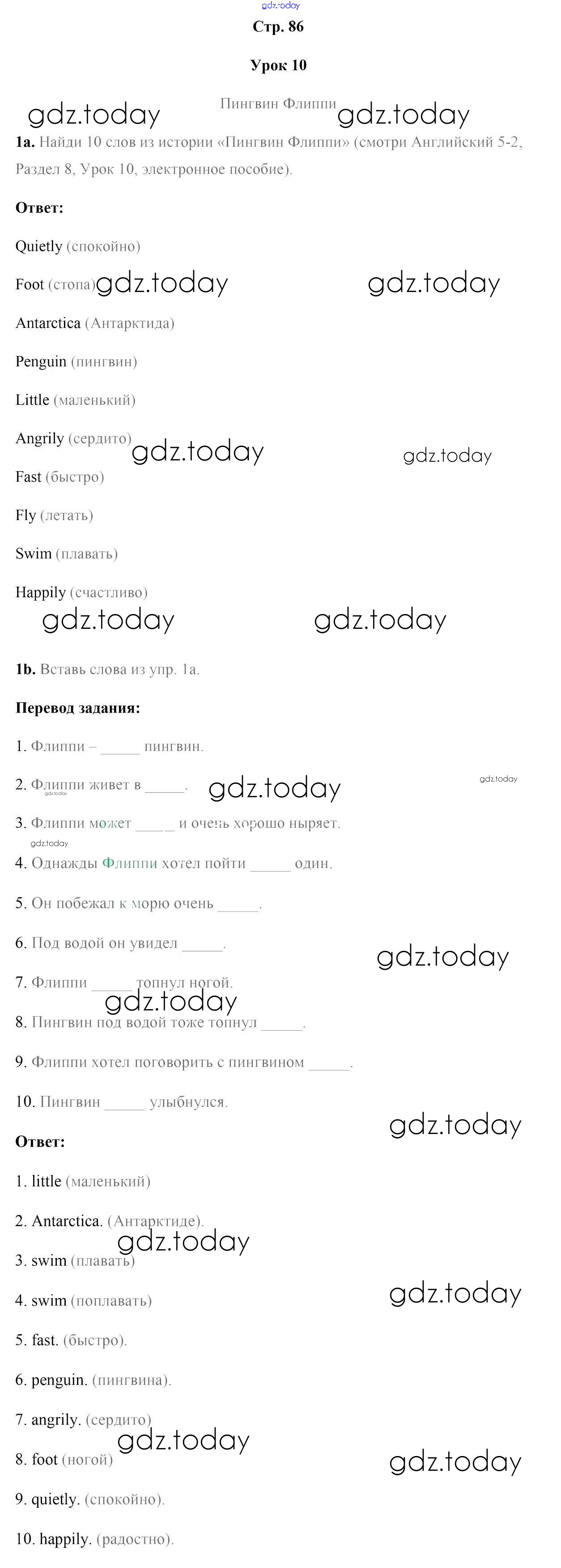 Ответы к Решение к части 2. Страницы 86 Рабочей тетради по Английскому языку для 5 класса Лапицкая, Севрюкова Аверсэв 2016