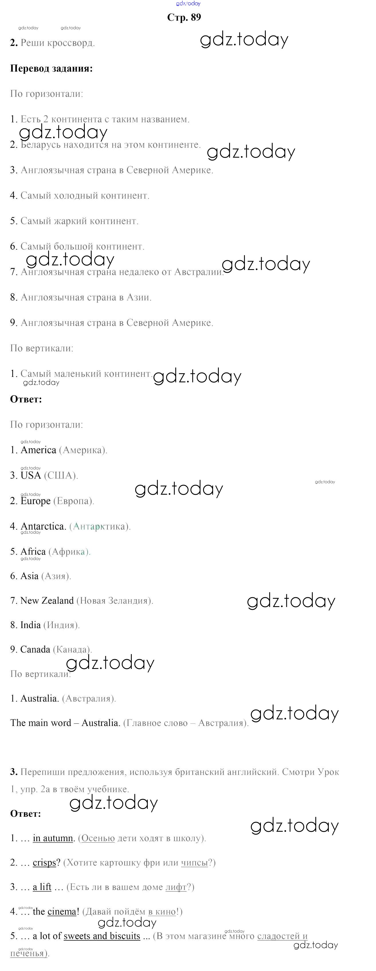 На страницах сайта gdz.today вы найдете учебный и вспомогательный материал, направленный на улучшения знаний школьной программы. ГДЗ - онлайн мир знаний Решение к части 2. Страницы 89 Рабочей тетради по Английскому языку для 5 класса Лапицкая, Севрюкова Аверсэв 2016