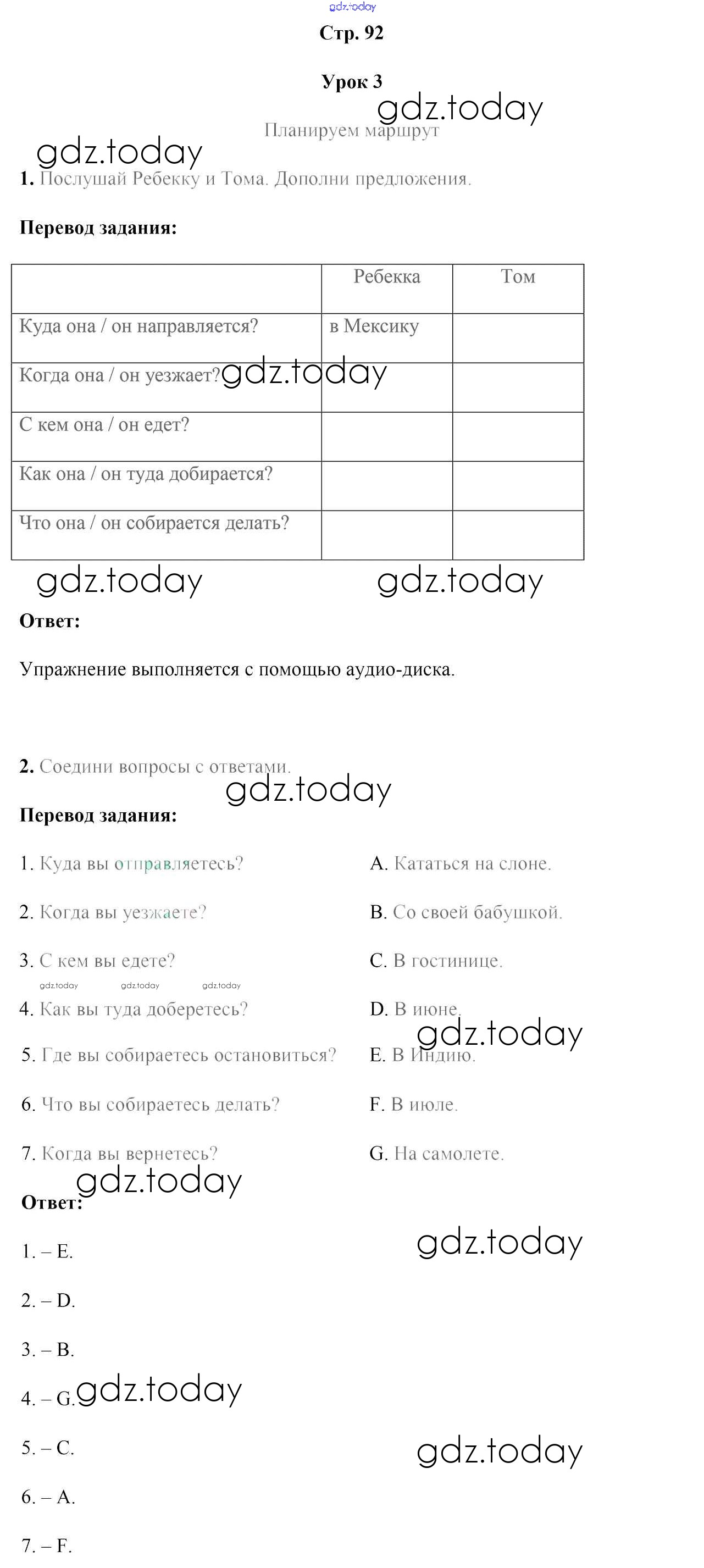 На страницах сайта gdz.today вы найдете учебный и вспомогательный материал, направленный на улучшения знаний школьной программы. ГДЗ - онлайн мир знаний Решение к части 2. Страницы 92 Рабочей тетради по Английскому языку для 5 класса Лапицкая, Севрюкова Аверсэв 2016
