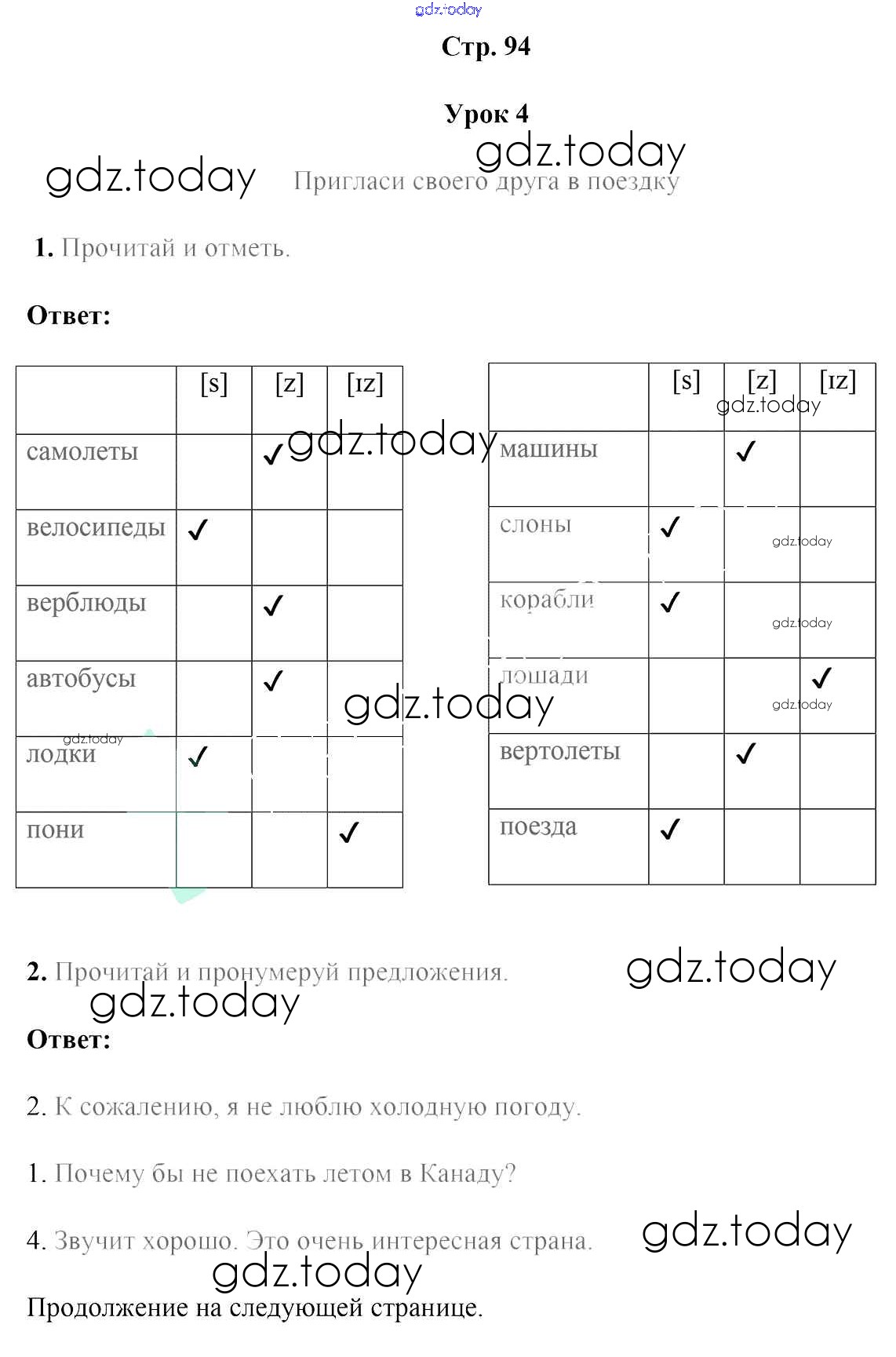 На страницах сайта gdz.today вы найдете учебный и вспомогательный материал, направленный на улучшения знаний школьной программы. ГДЗ - онлайн мир знаний Решение к части 2. Страницы 94 Рабочей тетради по Английскому языку для 5 класса Лапицкая, Севрюкова Аверсэв 2016