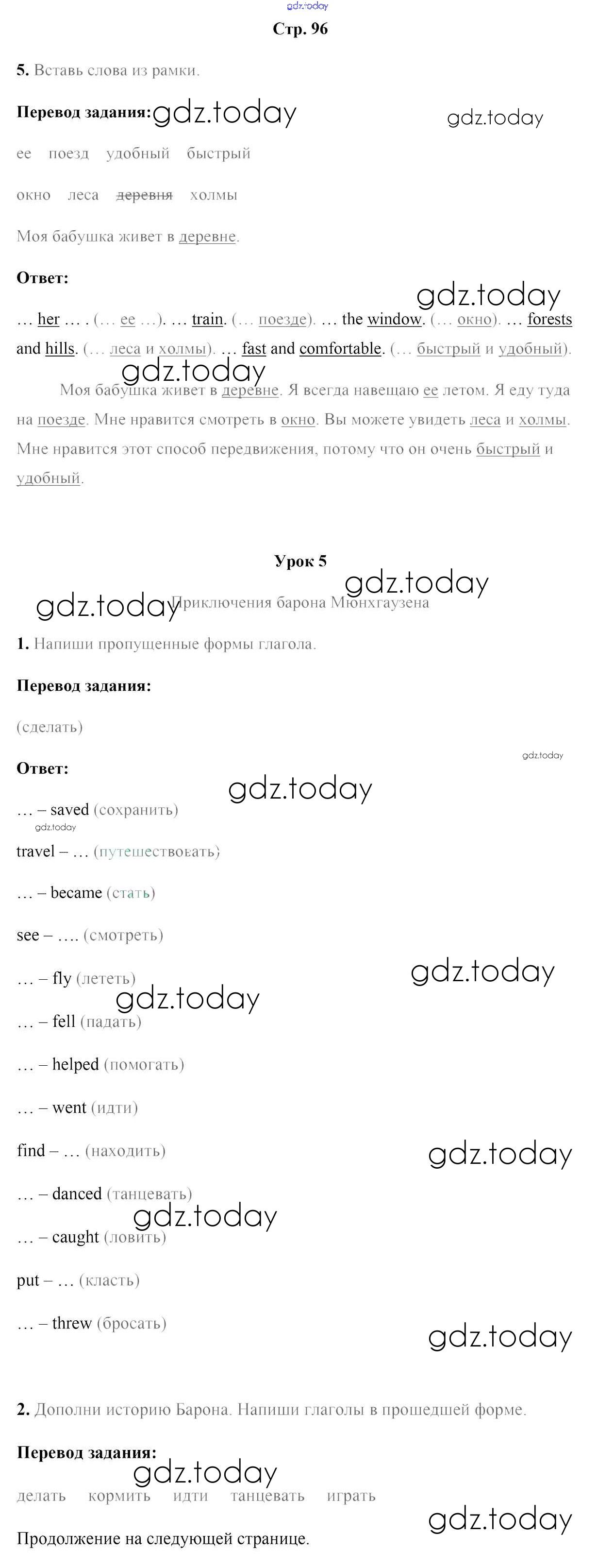 На страницах сайта gdz.today вы найдете учебный и вспомогательный материал, направленный на улучшения знаний школьной программы. ГДЗ - онлайн мир знаний Решение к части 2. Страницы 96 Рабочей тетради по Английскому языку для 5 класса Лапицкая, Севрюкова Аверсэв 2016