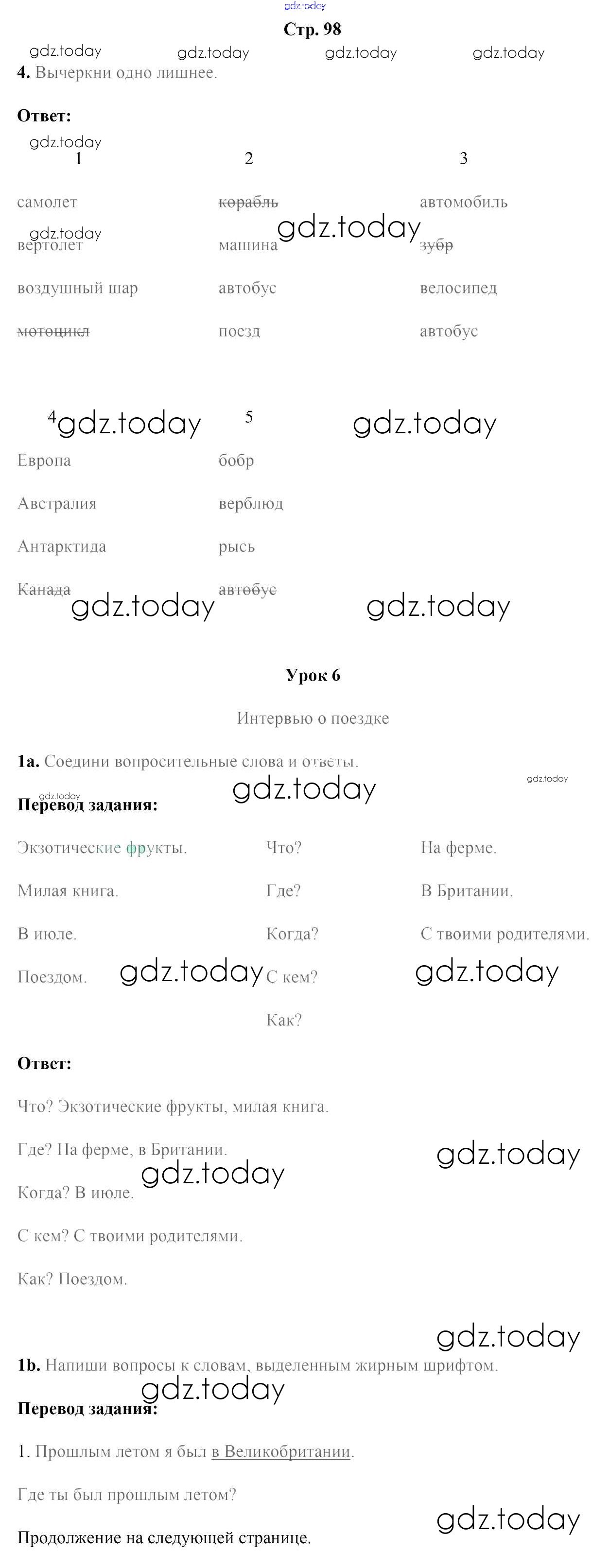 На страницах сайта gdz.today вы найдете учебный и вспомогательный материал, направленный на улучшения знаний школьной программы. ГДЗ - онлайн мир знаний Решение к части 2. Страницы 98 Рабочей тетради по Английскому языку для 5 класса Лапицкая, Севрюкова Аверсэв 2016