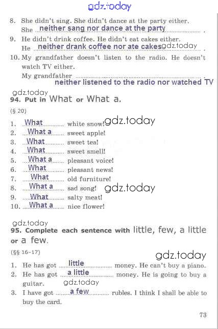 На страницах сайта gdz.today вы найдете учебный и вспомогательный материал, направленный на улучшения знаний школьной программы. ГДЗ - онлайн мир знаний Lesson 10 Решение к части 1 стр. 73 Сборнику упражнений по Английскому языку для 5 класса Барашкова Экзамен УМК 2020