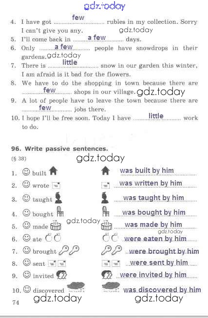 На страницах сайта gdz.today вы найдете учебный и вспомогательный материал, направленный на улучшения знаний школьной программы. ГДЗ - онлайн мир знаний Lesson 10 Решение к части 1 стр. 74 Сборнику упражнений по Английскому языку для 5 класса Барашкова Экзамен УМК 2020