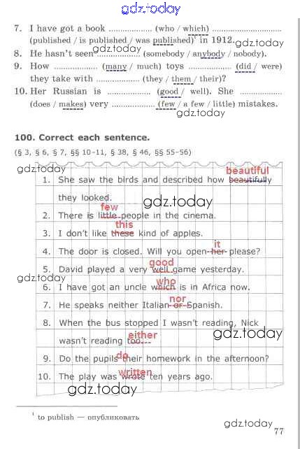 На страницах сайта gdz.today вы найдете учебный и вспомогательный материал, направленный на улучшения знаний школьной программы. ГДЗ - онлайн мир знаний Lesson 10 Решение к части 1 стр. 77 Сборнику упражнений по Английскому языку для 5 класса Барашкова Экзамен УМК 2020