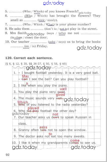 На страницах сайта gdz.today вы найдете учебный и вспомогательный материал, направленный на улучшения знаний школьной программы. ГДЗ - онлайн мир знаний Lesson 12 Решение к части 1 стр. 92 Сборнику упражнений по Английскому языку для 5 класса Барашкова Экзамен УМК 2020
