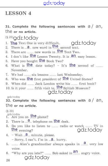 На страницах сайта gdz.today вы найдете учебный и вспомогательный материал, направленный на улучшения знаний школьной программы. ГДЗ - онлайн мир знаний Lesson 4 Решение к части 1 стр. 26 Сборнику упражнений по Английскому языку для 5 класса Барашкова Экзамен УМК 2020