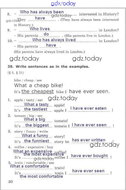 На страницах сайта gdz.today вы найдете учебный и вспомогательный материал, направленный на улучшения знаний школьной программы. ГДЗ - онлайн мир знаний Lesson 4 Решение к части 1 стр. 30 Сборнику упражнений по Английскому языку для 5 класса Барашкова Экзамен УМК 2020
