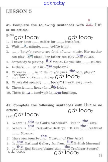 На страницах сайта gdz.today вы найдете учебный и вспомогательный материал, направленный на улучшения знаний школьной программы. ГДЗ - онлайн мир знаний Lesson 5 Решение к части 1 стр. 33 Сборнику упражнений по Английскому языку для 5 класса Барашкова Экзамен УМК 2020