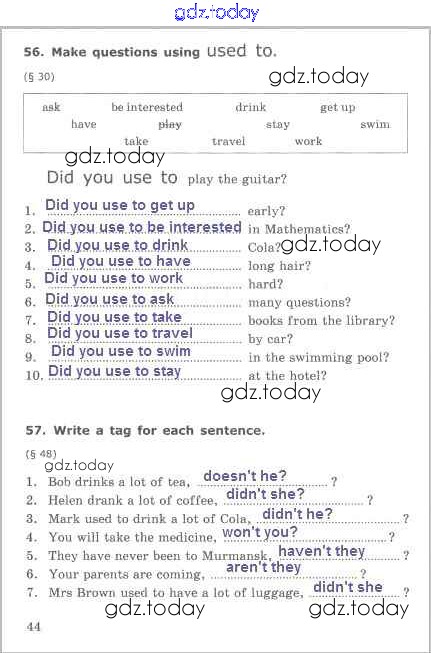 На страницах сайта gdz.today вы найдете учебный и вспомогательный материал, направленный на улучшения знаний школьной программы. ГДЗ - онлайн мир знаний Lesson 6 Решение к части 1 стр. 44 Сборнику упражнений по Английскому языку для 5 класса Барашкова Экзамен УМК 2020