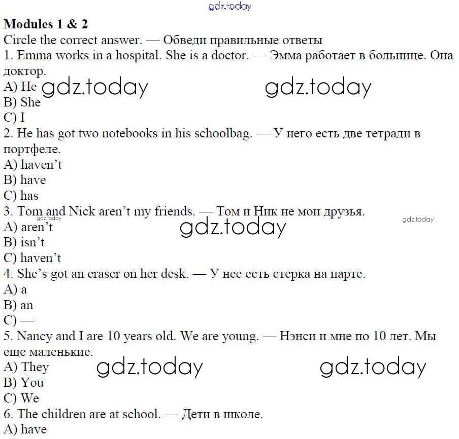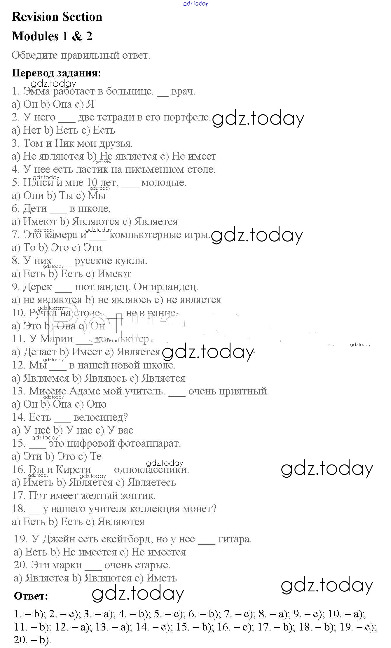 На страницах сайта gdz.today вы найдете учебный и вспомогательный материал, направленный на улучшения знаний школьной программы. ГДЗ - онлайн мир знаний Модули Повторение (решение) 1-2 Рабочей тетради по Английскому языку для 5 класса Ваулина, Дули Просвещение, Просвещение Spotlight 2016, 2022