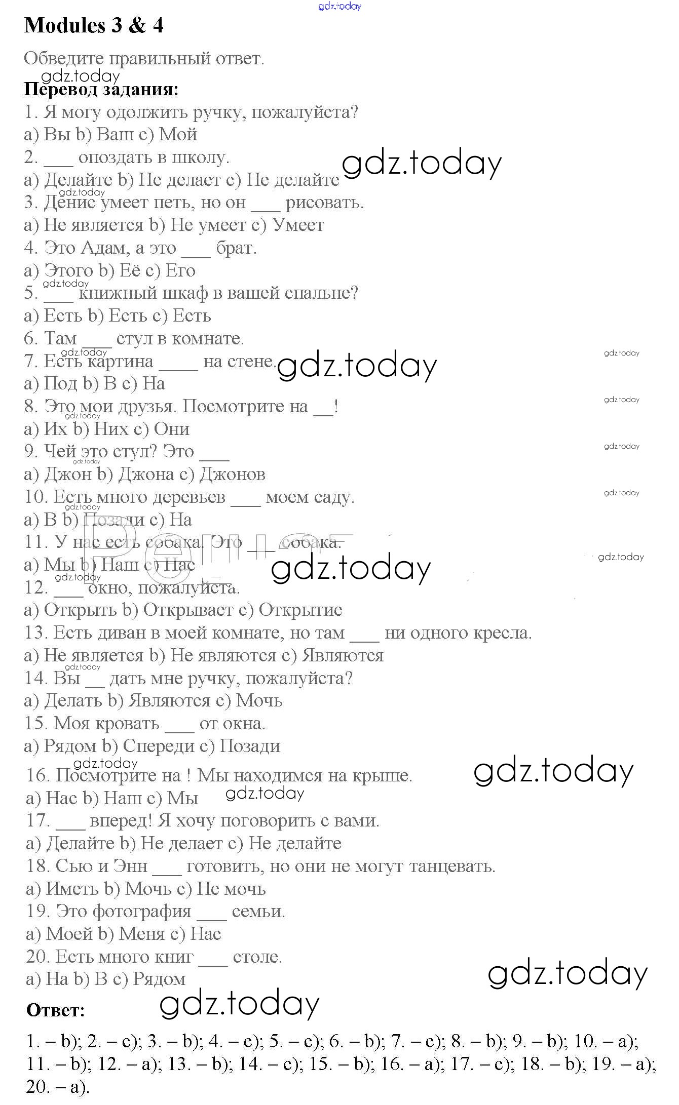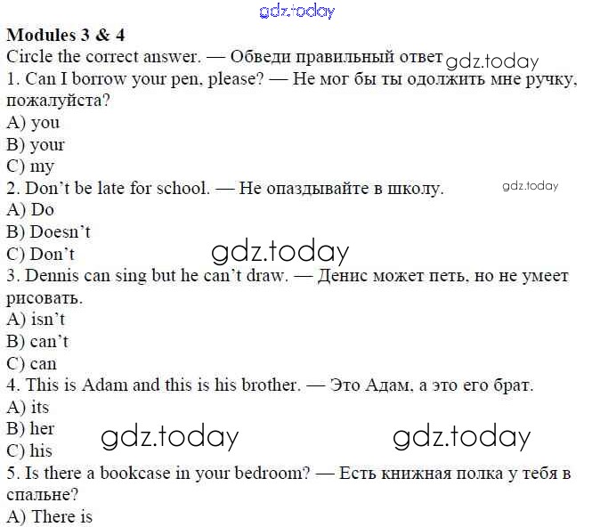 На страницах сайта gdz.today вы найдете учебный и вспомогательный материал, направленный на улучшения знаний школьной программы. ГДЗ - онлайн мир знаний Модули Повторение (решение) 3-4 Рабочей тетради по Английскому языку для 5 класса Ваулина, Дули Просвещение, Просвещение Spotlight 2016, 2022