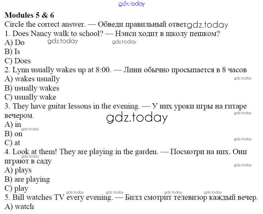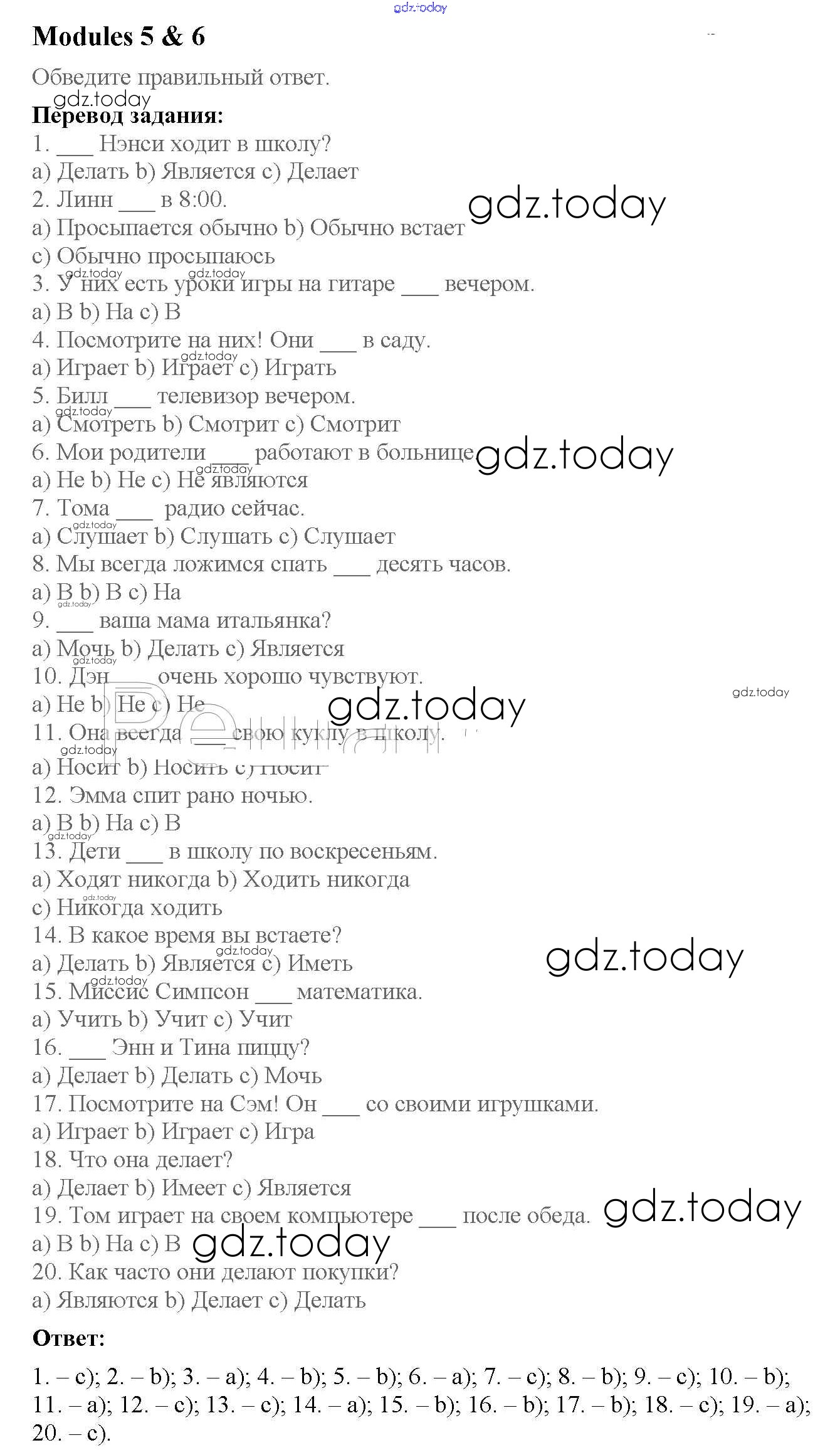На страницах сайта gdz.today вы найдете учебный и вспомогательный материал, направленный на улучшения знаний школьной программы. ГДЗ - онлайн мир знаний Модули Повторение (решение) 5-6 Рабочей тетради по Английскому языку для 5 класса Ваулина, Дули Просвещение, Просвещение Spotlight 2016, 2022
