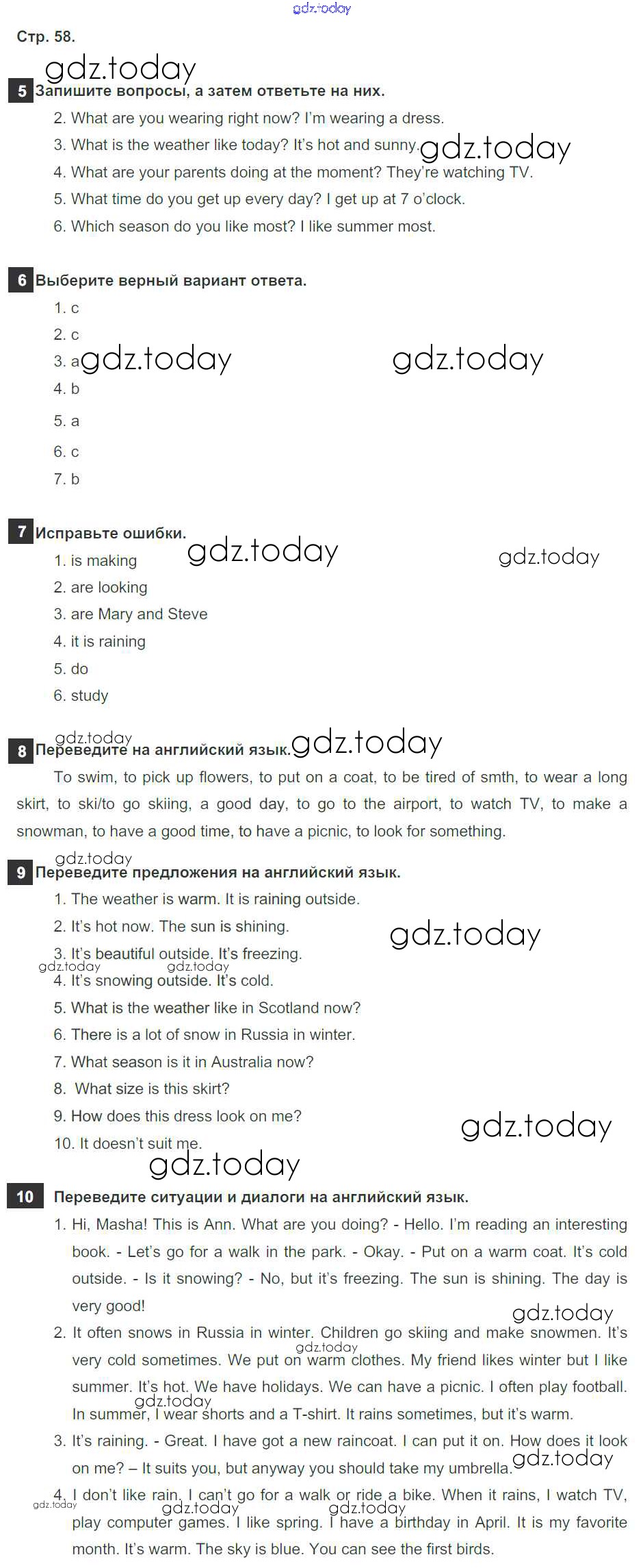 На страницах сайта gdz.today вы найдете учебный и вспомогательный материал, направленный на улучшения знаний школьной программы. ГДЗ - онлайн мир знаний Страницы (решение) 58 Рабочей тетради по Английскому языку для 5 класса Ваулина, Дули Просвещение, Просвещение Spotlight 2016, 2022