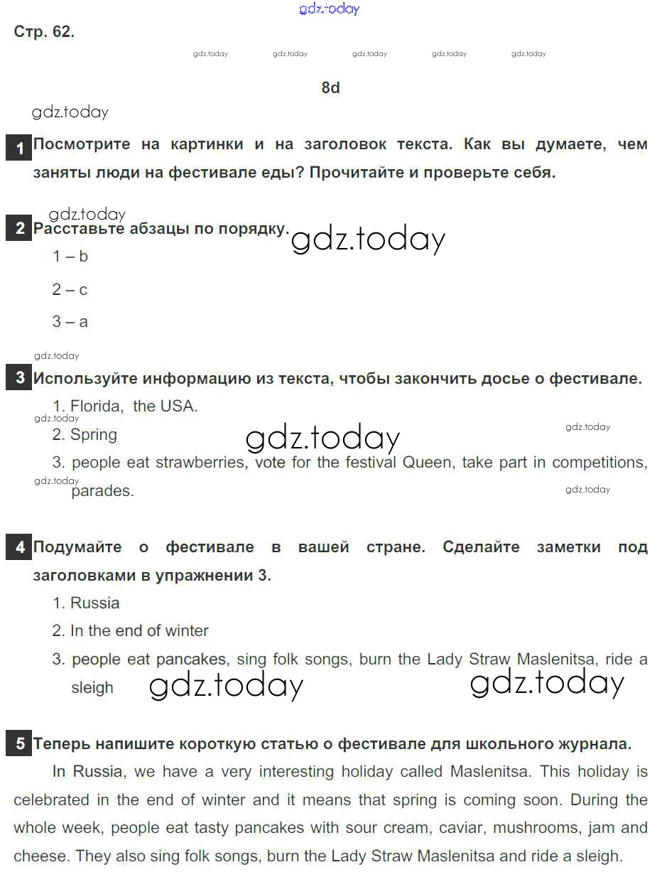 Ответы к Страницы (решение) 62 Рабочей тетради по Английскому языку для 5 класса Ваулина, Дули Просвещение, Просвещение Spotlight 2016, 2022