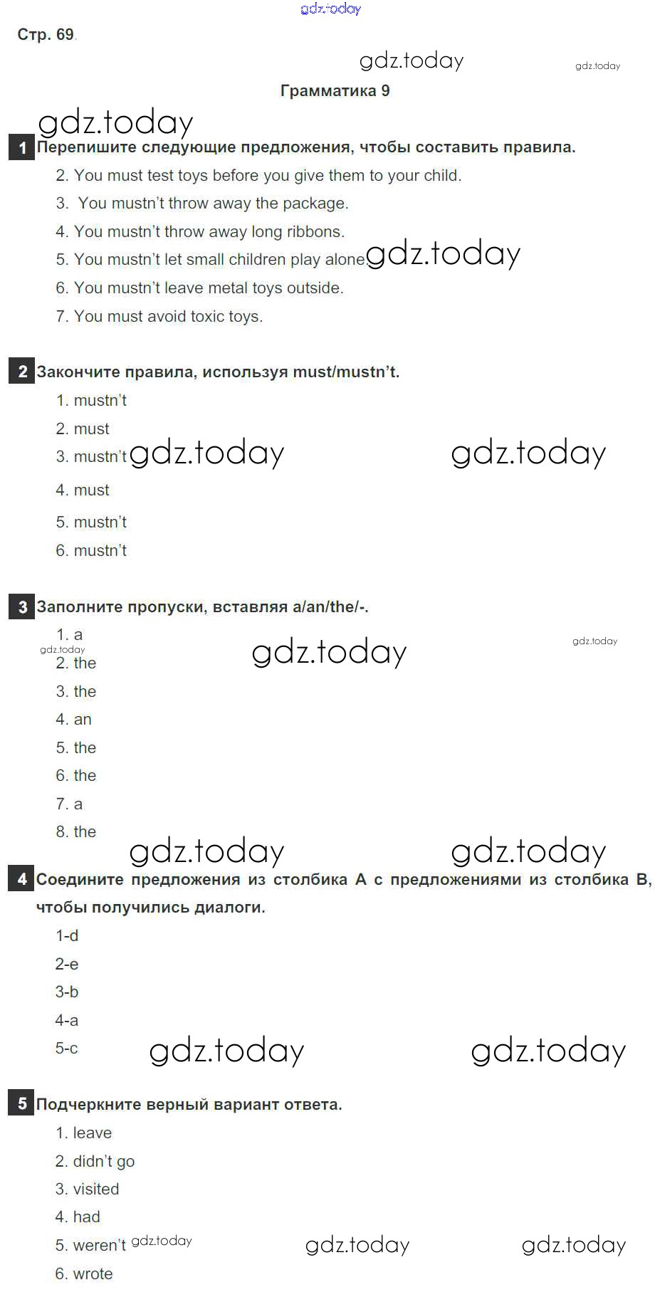 Ответы к Страницы (решение) 69 Рабочей тетради по Английскому языку для 5 класса Ваулина, Дули Просвещение, Просвещение Spotlight 2016, 2022