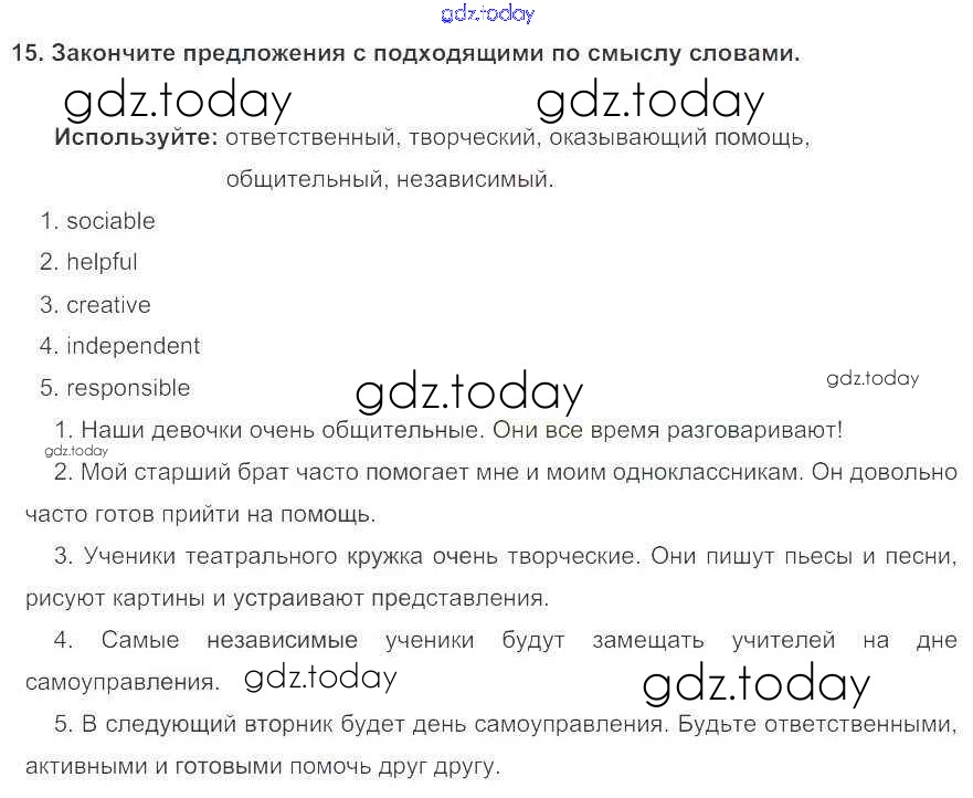 На страницах сайта gdz.today вы найдете учебный и вспомогательный материал, направленный на улучшения знаний школьной программы. ГДЗ - онлайн мир знаний Домашняя работа Решение к Unit 1. Hello! Nice to see you again! 15 Учебнику по Английскому языку для 5 класса Биболетова, Денисенко Титул Enjoy English 2015