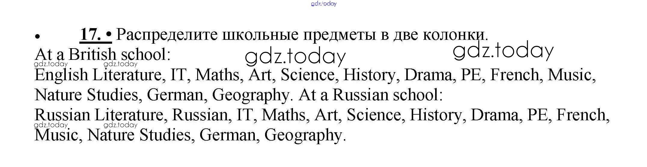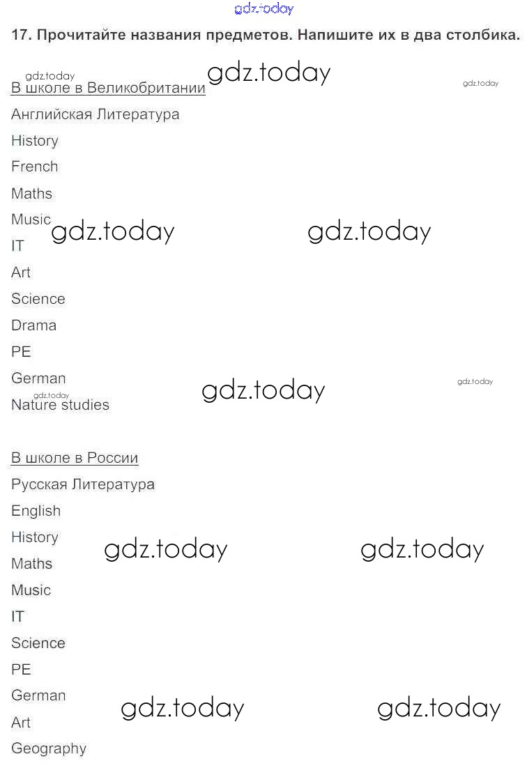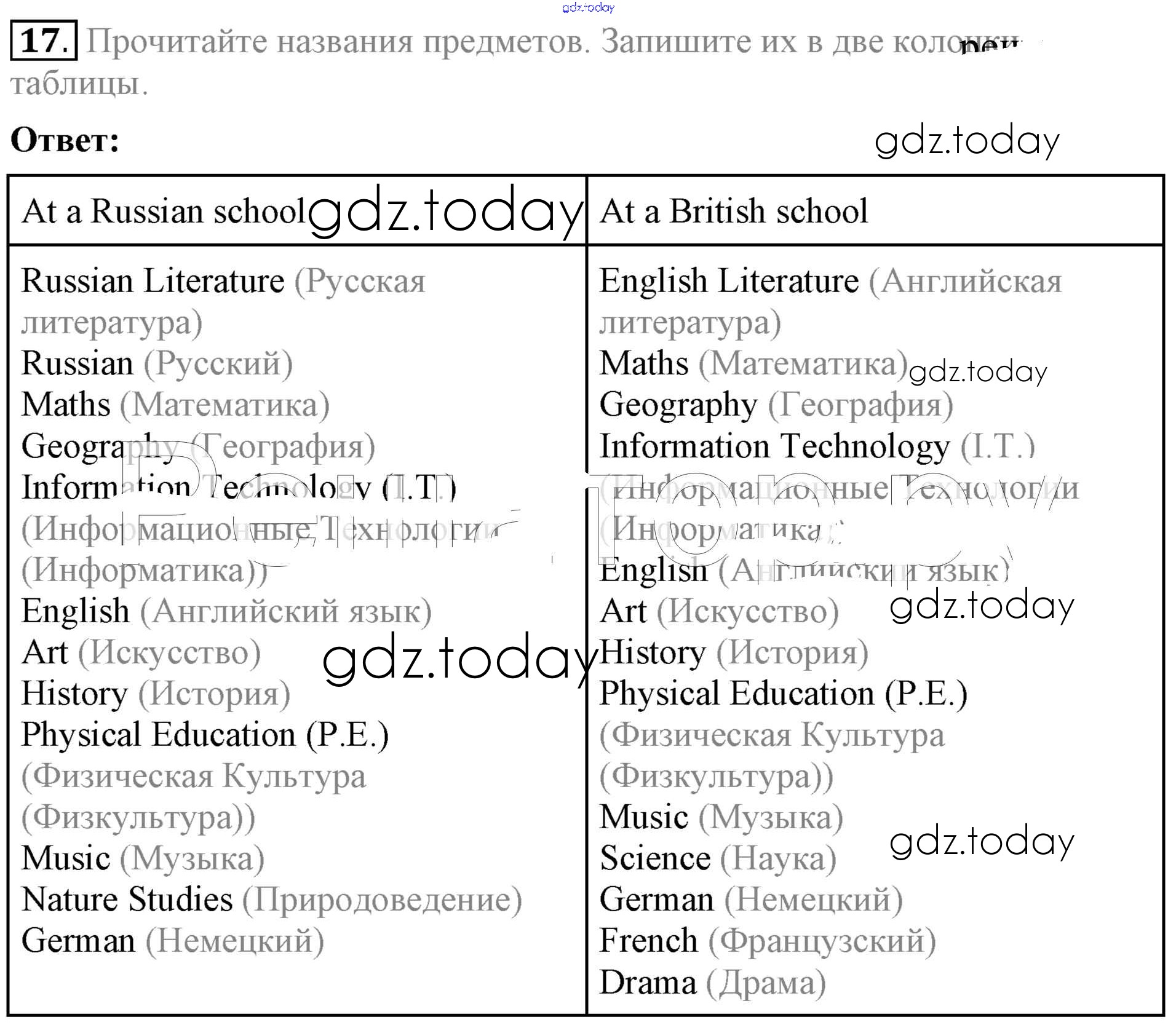На страницах сайта gdz.today вы найдете учебный и вспомогательный материал, направленный на улучшения знаний школьной программы. ГДЗ - онлайн мир знаний Домашняя работа Решение к Unit 1. Hello! Nice to see you again! 17 Учебнику по Английскому языку для 5 класса Биболетова, Денисенко Титул Enjoy English 2015