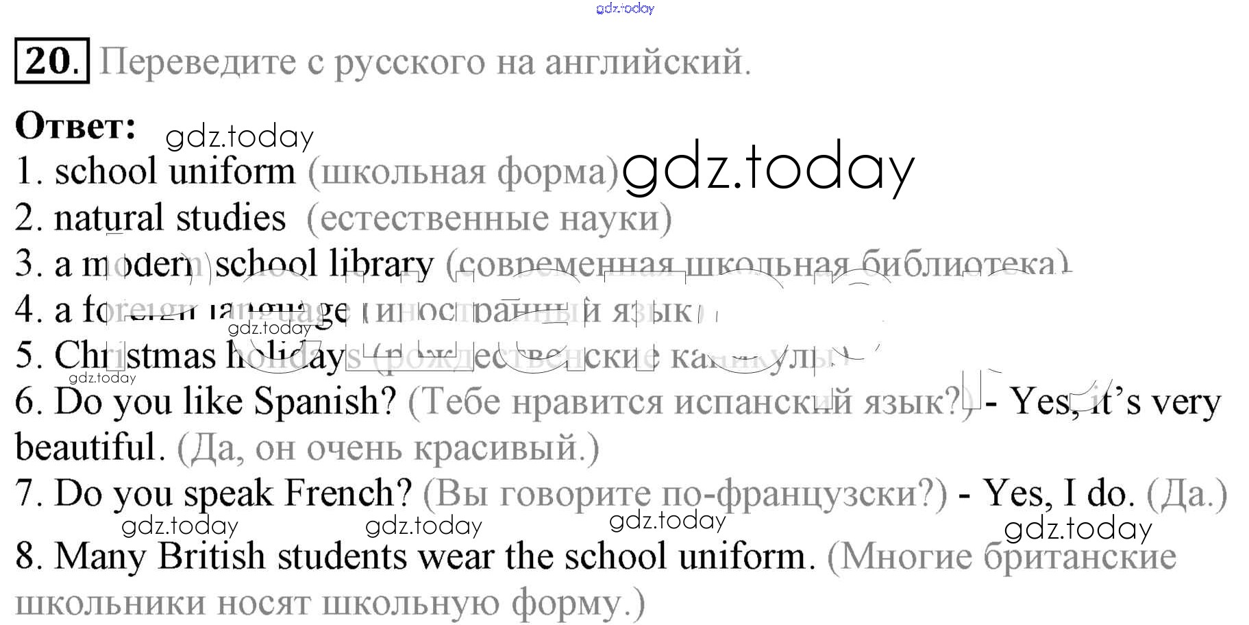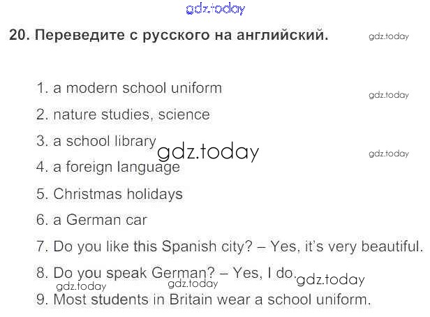 На страницах сайта gdz.today вы найдете учебный и вспомогательный материал, направленный на улучшения знаний школьной программы. ГДЗ - онлайн мир знаний Домашняя работа Решение к Unit 1. Hello! Nice to see you again! 20 Учебнику по Английскому языку для 5 класса Биболетова, Денисенко Титул Enjoy English 2015