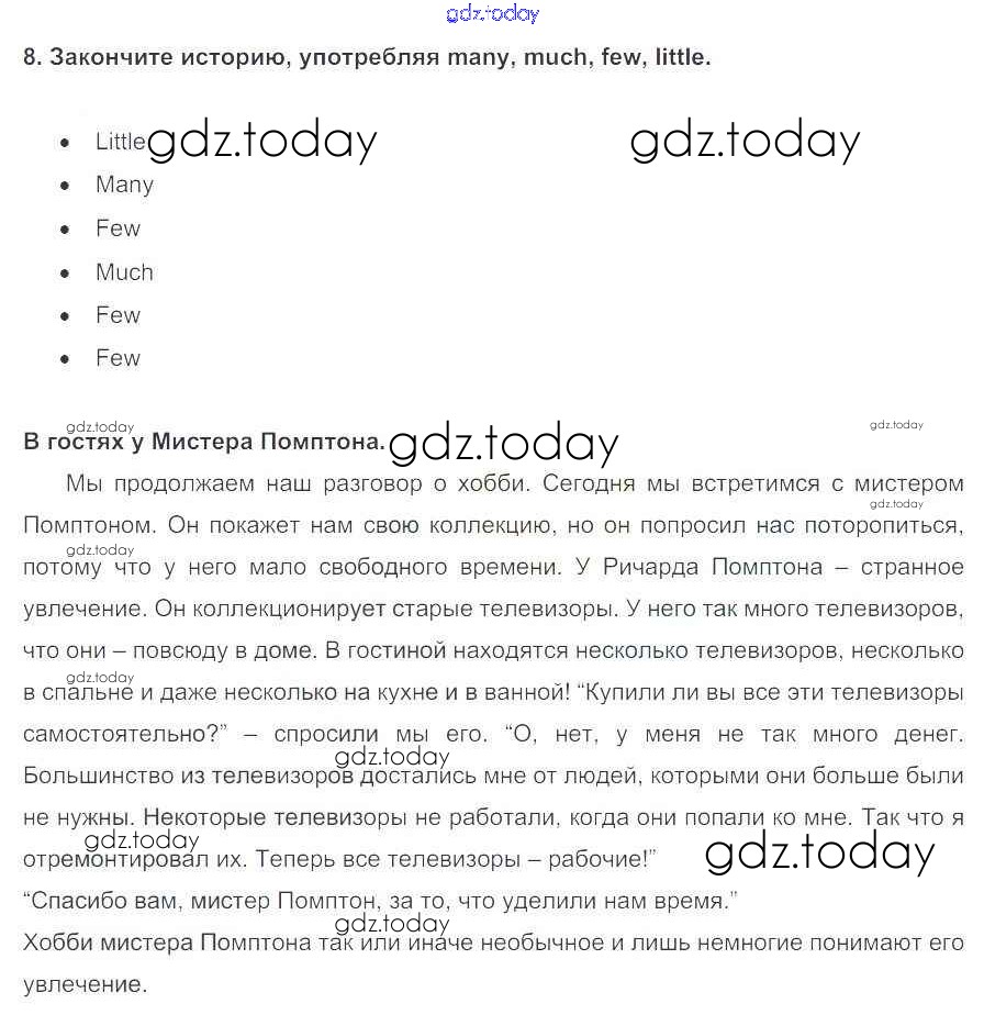 На страницах сайта gdz.today вы найдете учебный и вспомогательный материал, направленный на улучшения знаний школьной программы. ГДЗ - онлайн мир знаний Домашняя работа Решение к Unit 1. Hello! Nice to see you again! 8 Учебнику по Английскому языку для 5 класса Биболетова, Денисенко Титул Enjoy English 2015