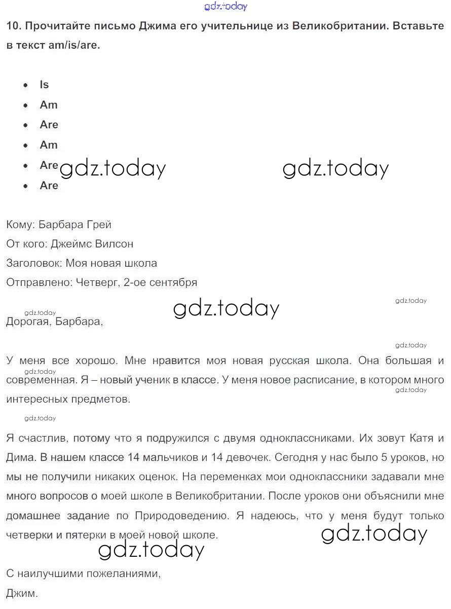 Ответы к Решение к Unit 1. Hello! Nice to see you again! 10 Учебнику по Английскому языку для 5 класса Биболетова, Денисенко Титул Enjoy English 2015