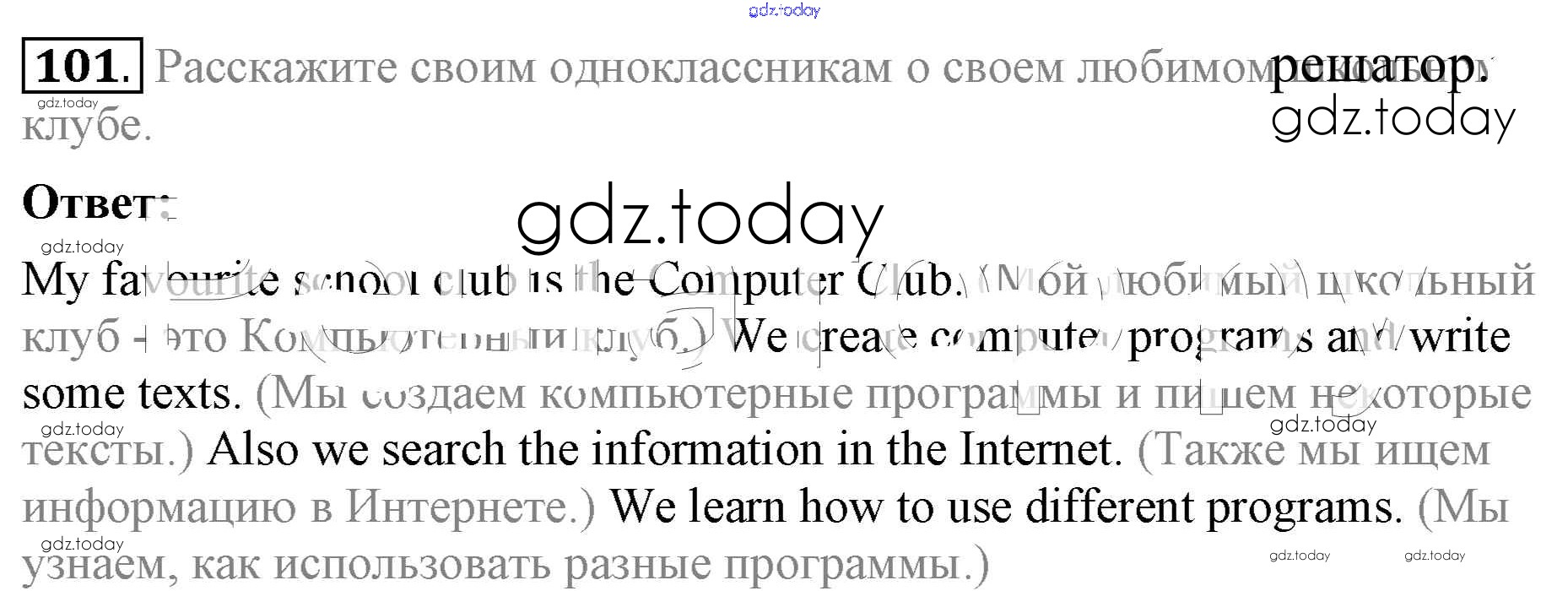 На страницах сайта gdz.today вы найдете учебный и вспомогательный материал, направленный на улучшения знаний школьной программы. ГДЗ - онлайн мир знаний Решение к Unit 1. Hello! Nice to see you again! 101 Учебнику по Английскому языку для 5 класса Биболетова, Денисенко Титул Enjoy English 2015