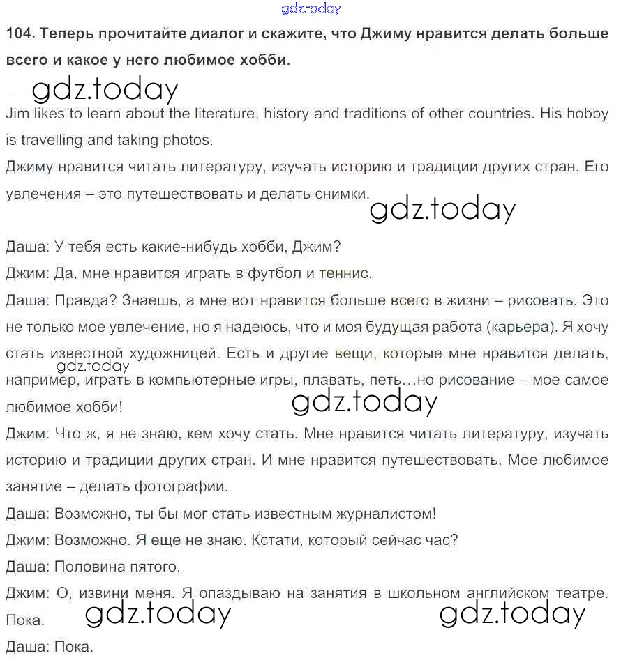 Ответы к Решение к Unit 1. Hello! Nice to see you again! 104 Учебнику по Английскому языку для 5 класса Биболетова, Денисенко Титул Enjoy English 2015