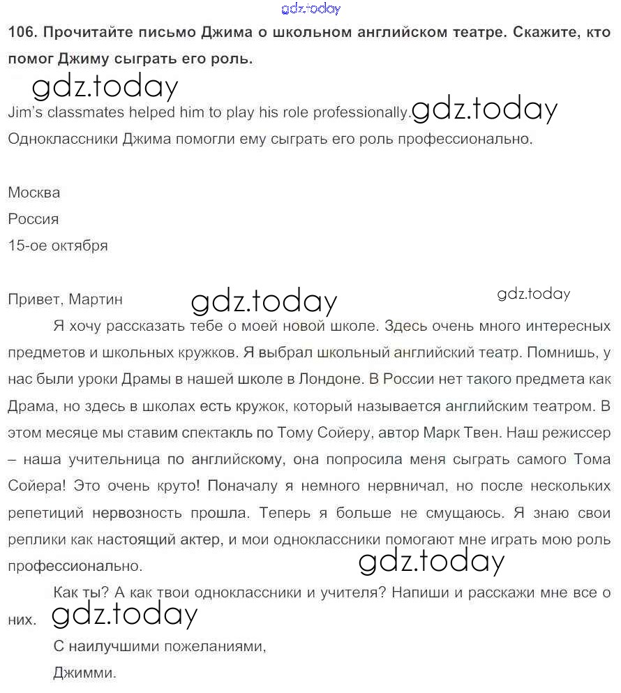 Ответы к Решение к Unit 1. Hello! Nice to see you again! 106 Учебнику по Английскому языку для 5 класса Биболетова, Денисенко Титул Enjoy English 2015