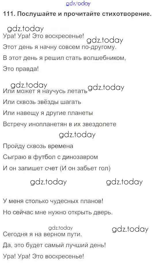 На страницах сайта gdz.today вы найдете учебный и вспомогательный материал, направленный на улучшения знаний школьной программы. ГДЗ - онлайн мир знаний Решение к Unit 1. Hello! Nice to see you again! 111 Учебнику по Английскому языку для 5 класса Биболетова, Денисенко Титул Enjoy English 2015