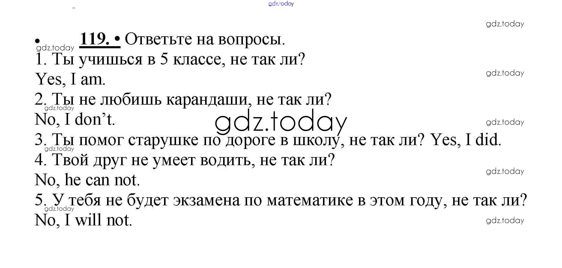 Ответы к Решение к Unit 1. Hello! Nice to see you again! 119 Учебнику по Английскому языку для 5 класса Биболетова, Денисенко Титул Enjoy English 2015