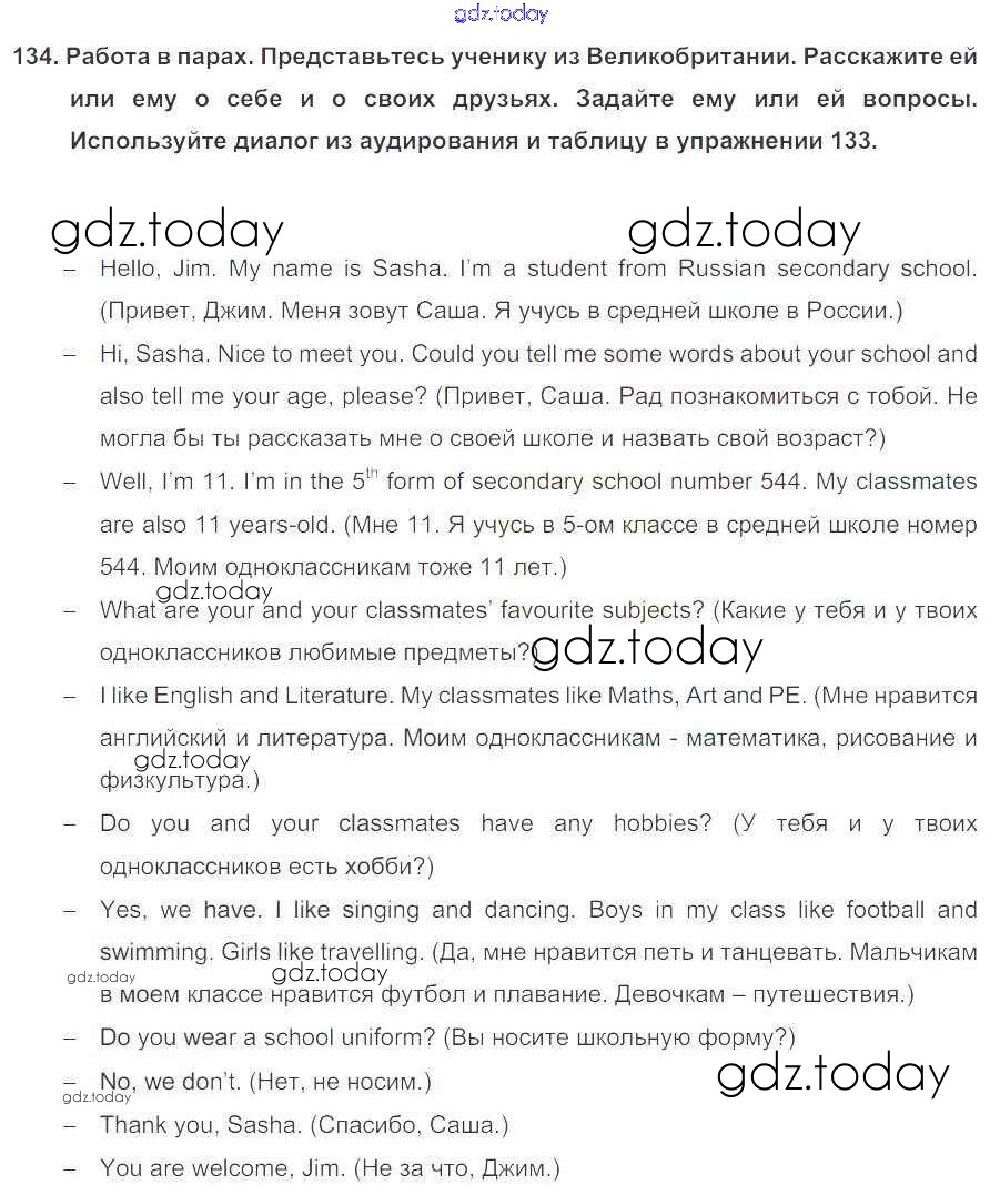 Ответы к Решение к Unit 1. Hello! Nice to see you again! 134 Учебнику по Английскому языку для 5 класса Биболетова, Денисенко Титул Enjoy English 2015