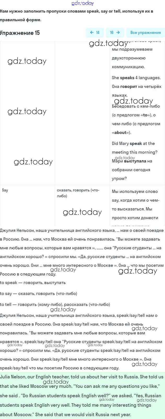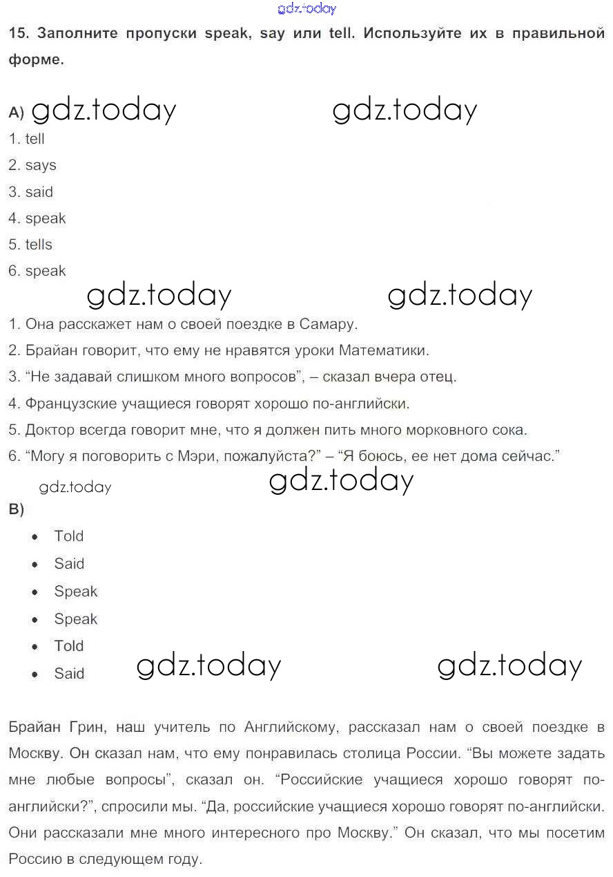 На страницах сайта gdz.today вы найдете учебный и вспомогательный материал, направленный на улучшения знаний школьной программы. ГДЗ - онлайн мир знаний Решение к Unit 1. Hello! Nice to see you again! 15 Учебнику по Английскому языку для 5 класса Биболетова, Денисенко Титул Enjoy English 2015