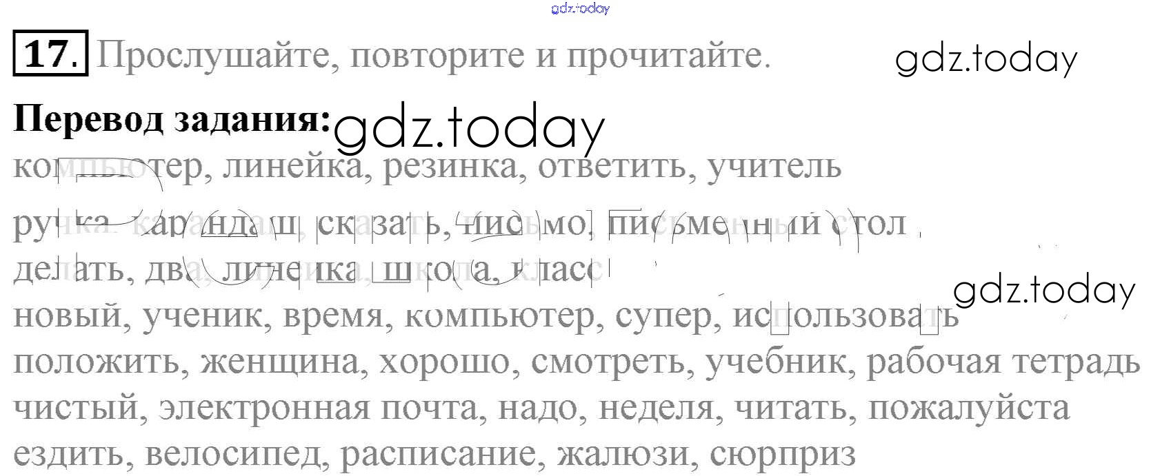 На страницах сайта gdz.today вы найдете учебный и вспомогательный материал, направленный на улучшения знаний школьной программы. ГДЗ - онлайн мир знаний Решение к Unit 1. Hello! Nice to see you again! 17 Учебнику по Английскому языку для 5 класса Биболетова, Денисенко Титул Enjoy English 2015
