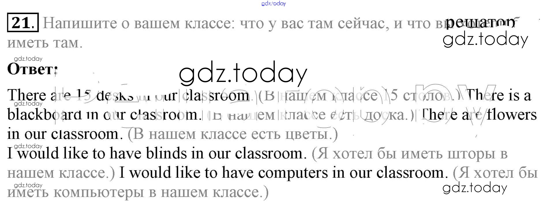 На страницах сайта gdz.today вы найдете учебный и вспомогательный материал, направленный на улучшения знаний школьной программы. ГДЗ - онлайн мир знаний Решение к Unit 1. Hello! Nice to see you again! 21 Учебнику по Английскому языку для 5 класса Биболетова, Денисенко Титул Enjoy English 2015