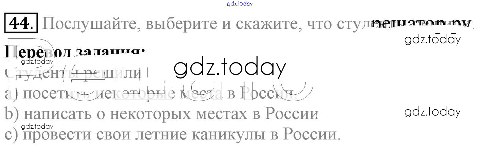 На страницах сайта gdz.today вы найдете учебный и вспомогательный материал, направленный на улучшения знаний школьной программы. ГДЗ - онлайн мир знаний Решение к Unit 1. Hello! Nice to see you again! 44 Учебнику по Английскому языку для 5 класса Биболетова, Денисенко Титул Enjoy English 2015