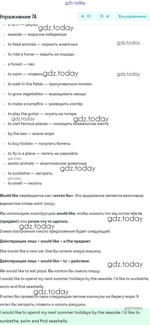 На страницах сайта gdz.today вы найдете учебный и вспомогательный материал, направленный на улучшения знаний школьной программы. ГДЗ - онлайн мир знаний Решение к Unit 1. Hello! Nice to see you again! 74 Учебнику по Английскому языку для 5 класса Биболетова, Денисенко Титул Enjoy English 2015