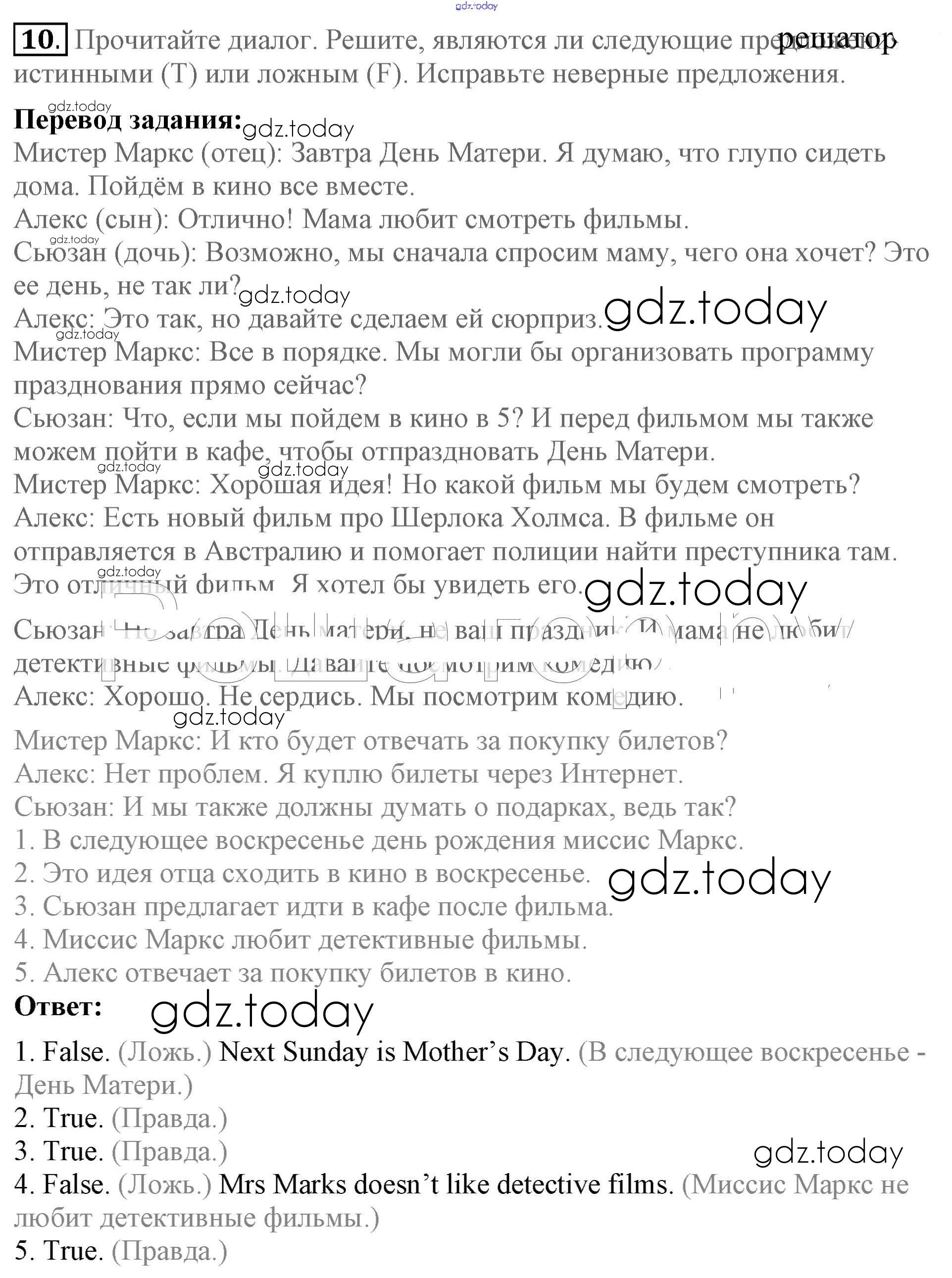 Ответы к Решение к Unit 2. We are going to travel to London 10 Учебнику по Английскому языку для 5 класса Биболетова, Денисенко Титул Enjoy English 2015
