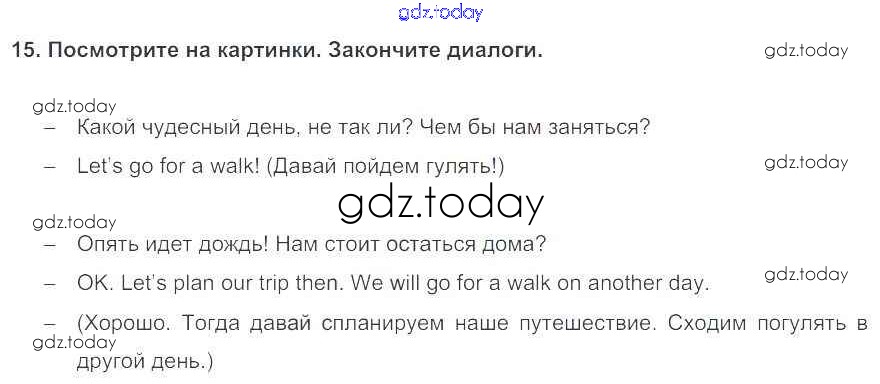 На страницах сайта gdz.today вы найдете учебный и вспомогательный материал, направленный на улучшения знаний школьной программы. ГДЗ - онлайн мир знаний Решение к Unit 2. We are going to travel to London 15 Учебнику по Английскому языку для 5 класса Биболетова, Денисенко Титул Enjoy English 2015