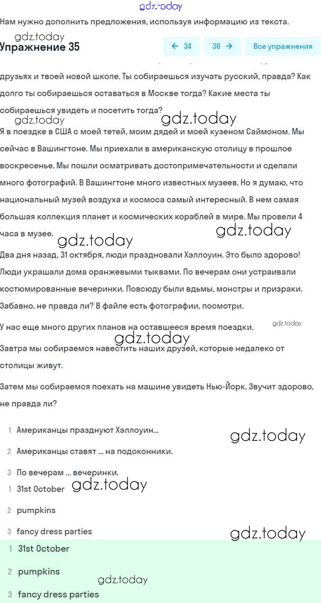 На страницах сайта gdz.today вы найдете учебный и вспомогательный материал, направленный на улучшения знаний школьной программы. ГДЗ - онлайн мир знаний Решение к Unit 2. We are going to travel to London 35 Учебнику по Английскому языку для 5 класса Биболетова, Денисенко Титул Enjoy English 2015