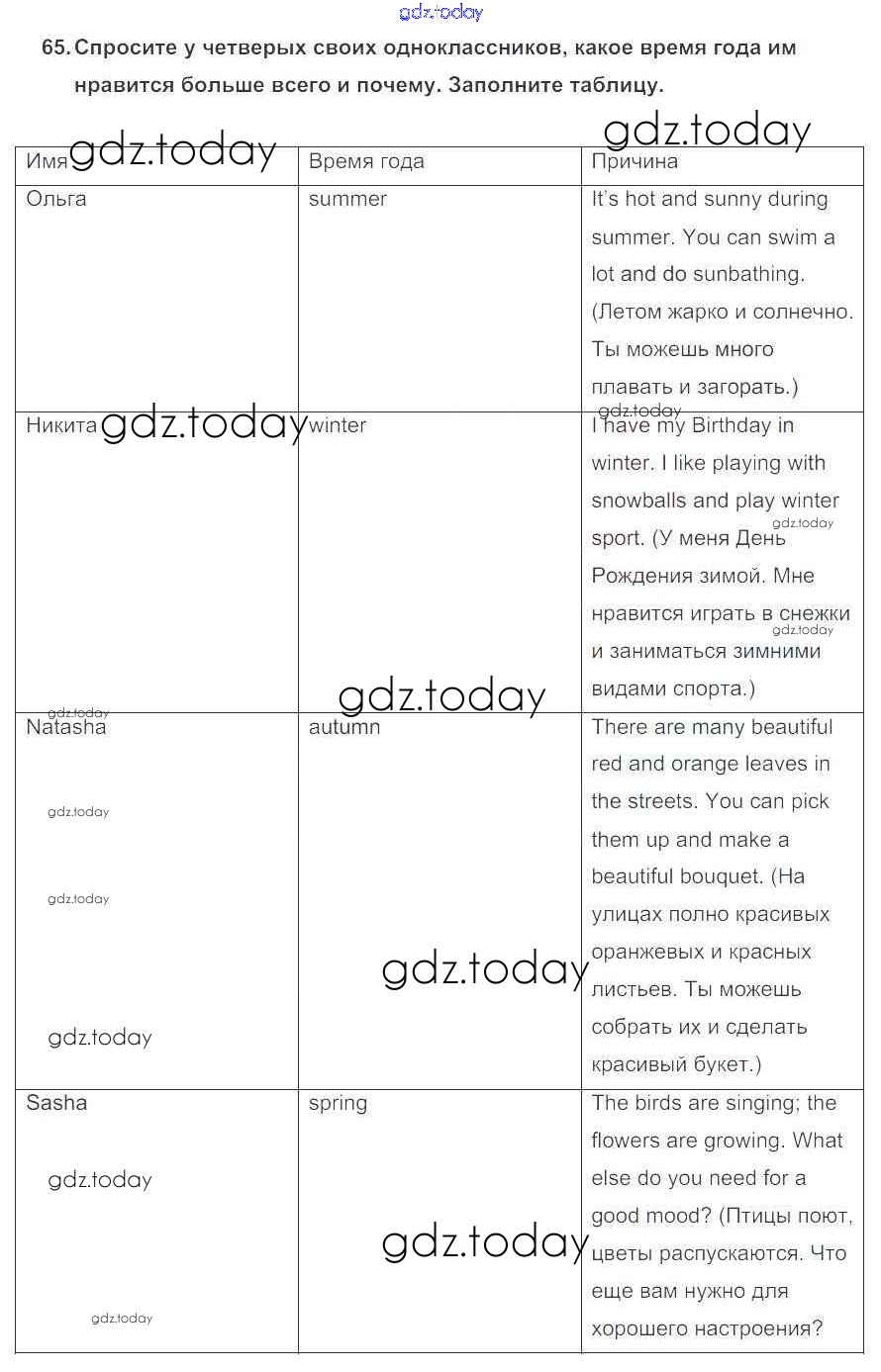 На страницах сайта gdz.today вы найдете учебный и вспомогательный материал, направленный на улучшения знаний школьной программы. ГДЗ - онлайн мир знаний Решение к Unit 2. We are going to travel to London 65 Учебнику по Английскому языку для 5 класса Биболетова, Денисенко Титул Enjoy English 2015